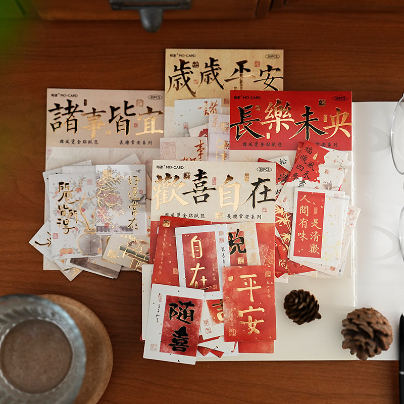 国风书法文字烫金贴纸包