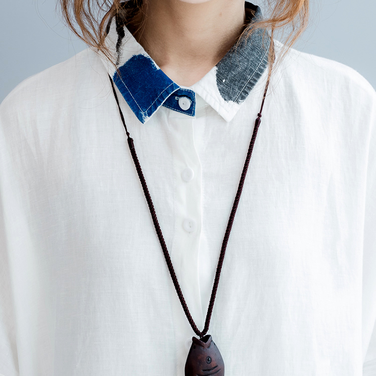 胖mm春季新款亚麻文艺拼色领衬衫