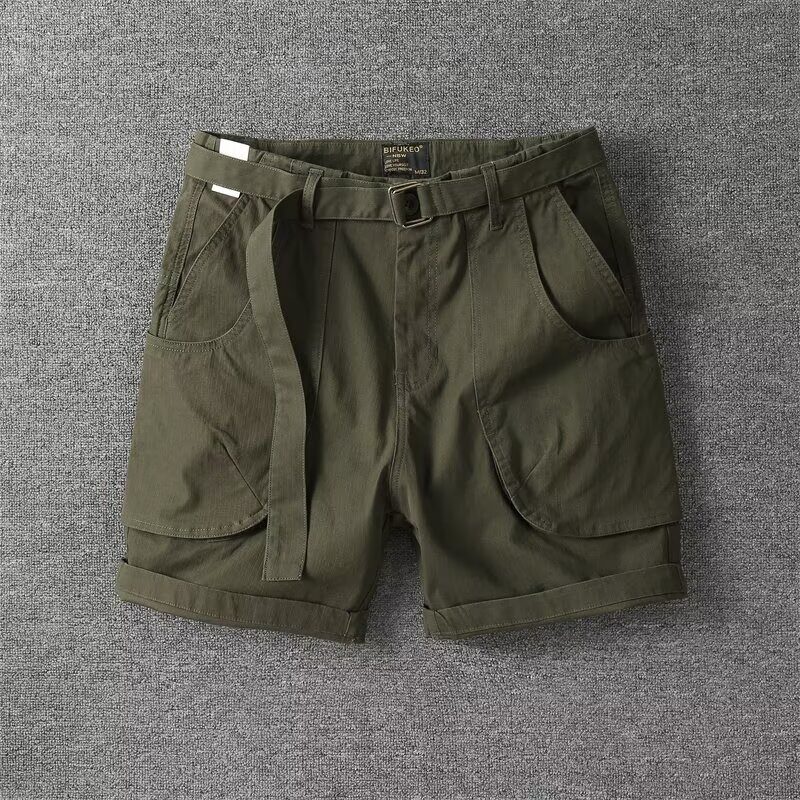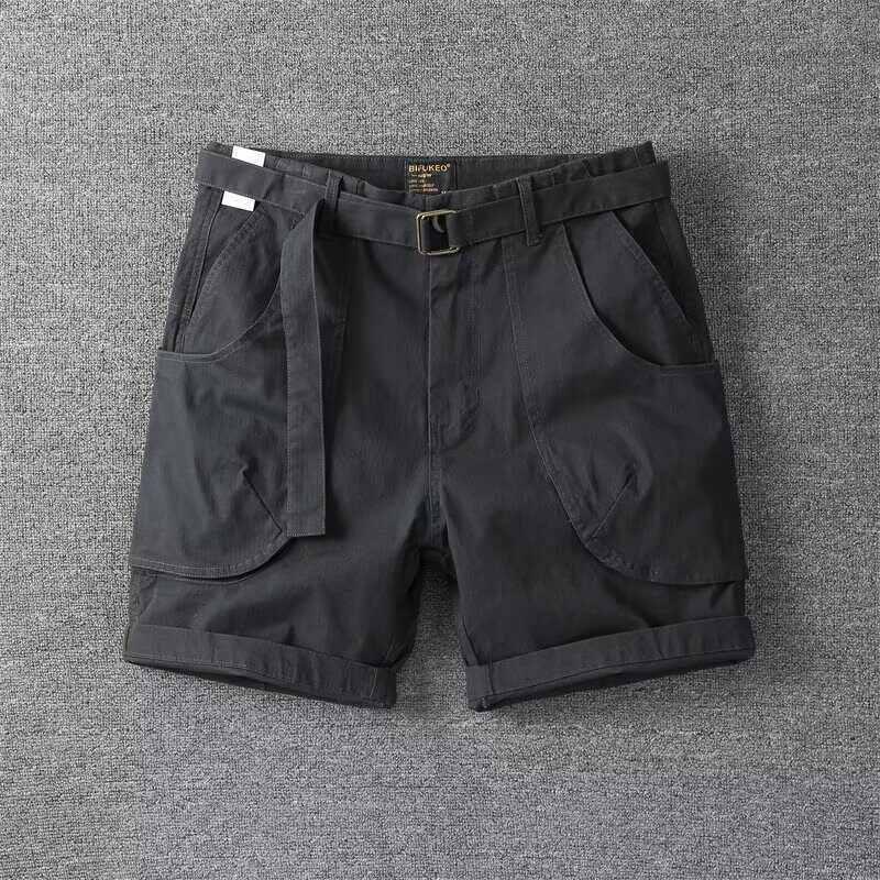 美式复古工装短裤男立体大口袋三四分中裤纯棉休闲高街宽松超短裤