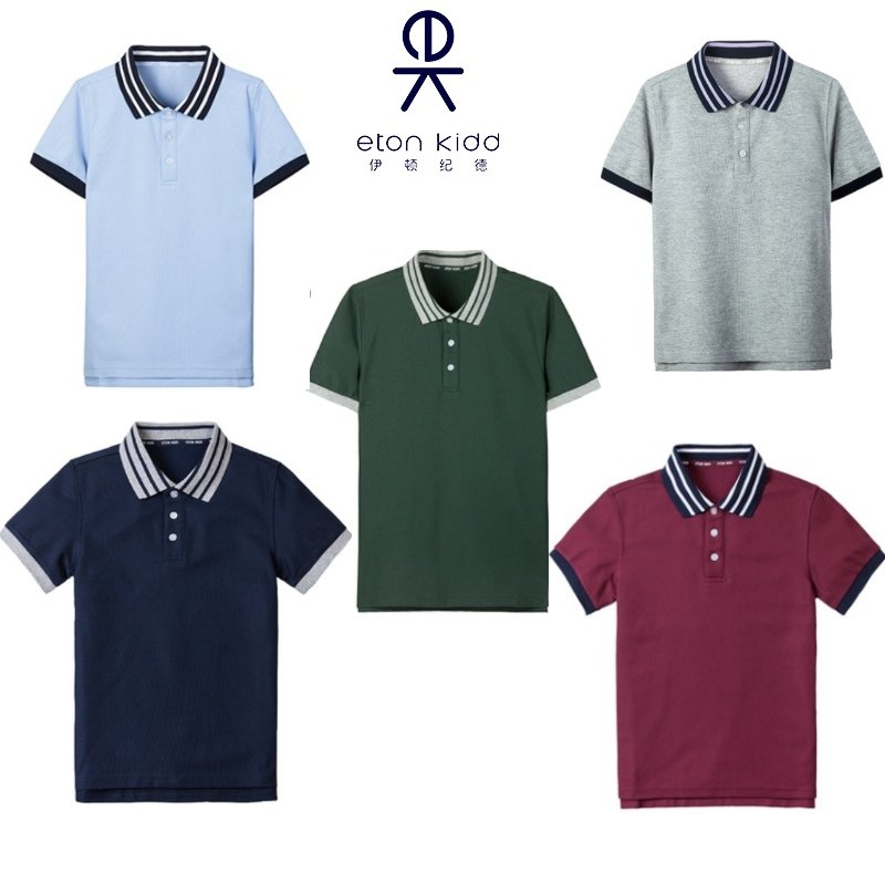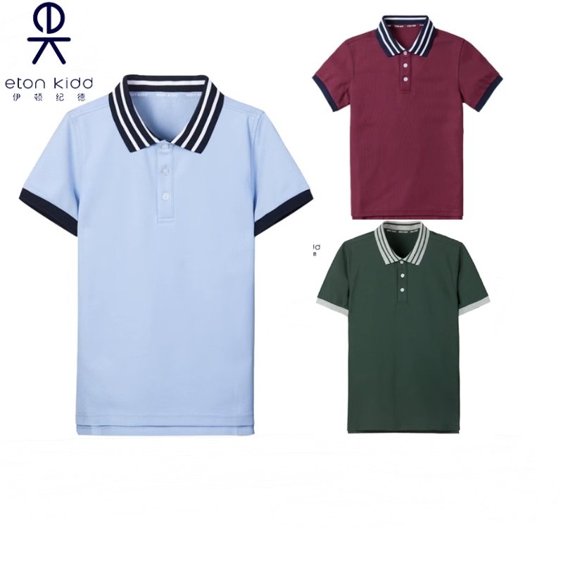 伊顿纪德校服大码学院浅蓝珠地网眼藏青短袖T恤16T056增订预