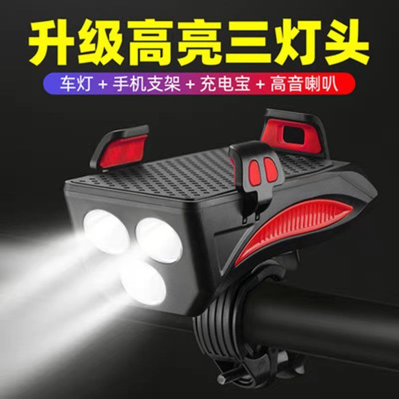 自行车夜骑灯电喇叭前灯充电单车灯山地车电动车手机架导航支架