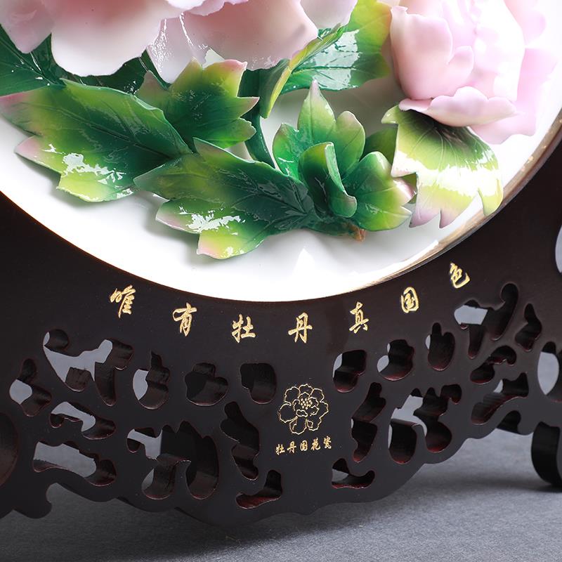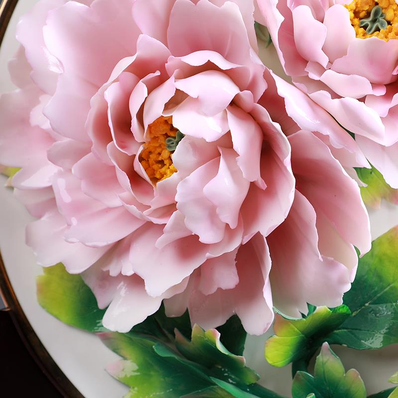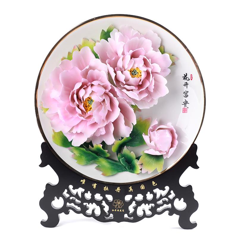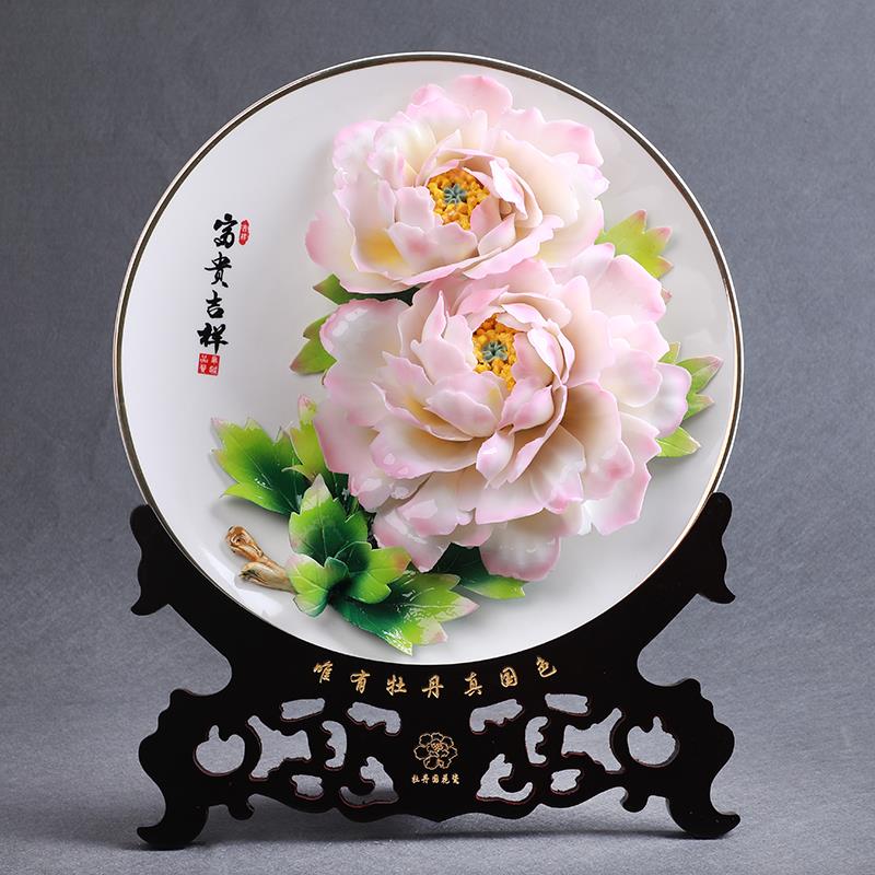 陶瓷牡丹挂盘摆件工艺品创意家居客厅家里装饰品电视酒柜隔断摆设