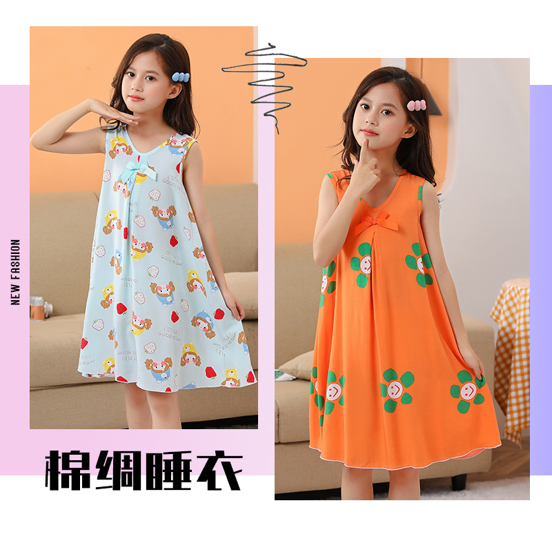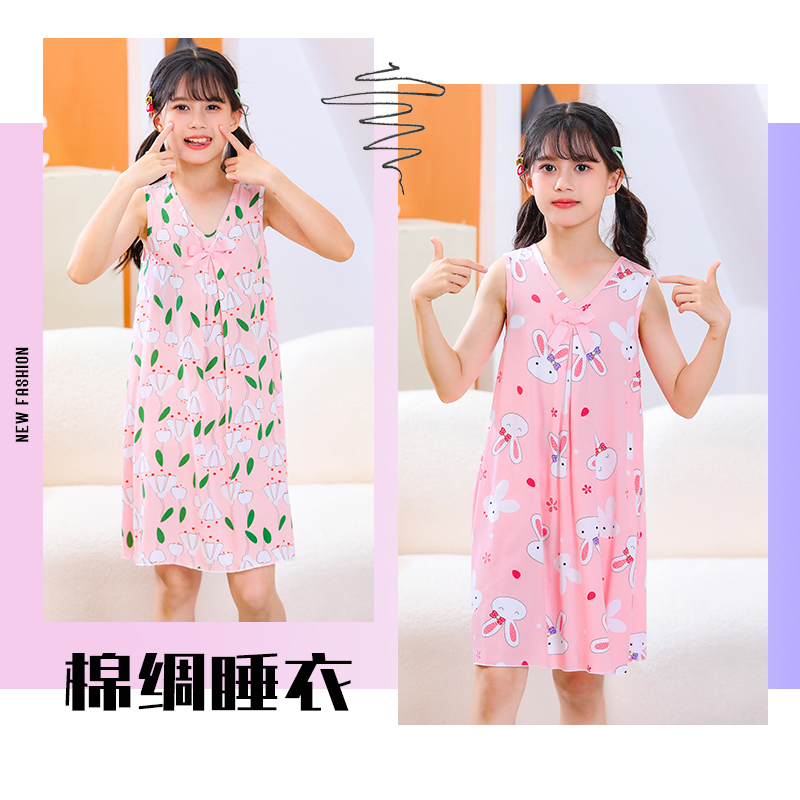 夏季儿童吊带棉绸睡衣女童睡裙中大D童公主吊带裙小女孩亲子家居