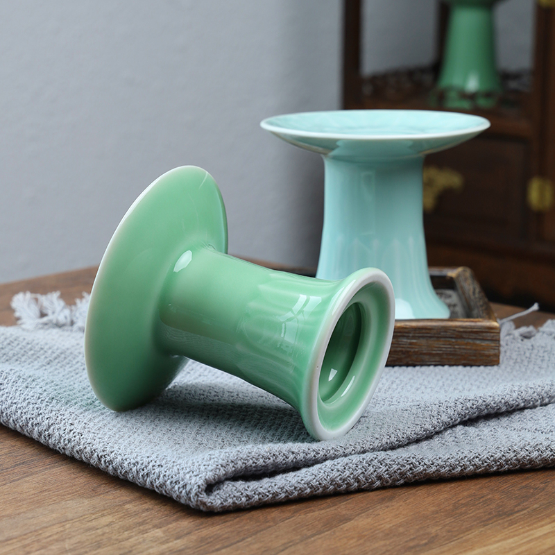 中式复古莲花供灯陶瓷佛具佛堂前供奉蜡烛台酥油灯座龙泉青瓷摆件