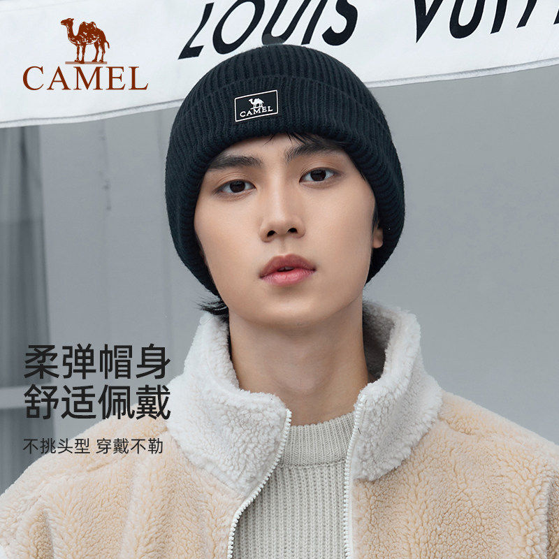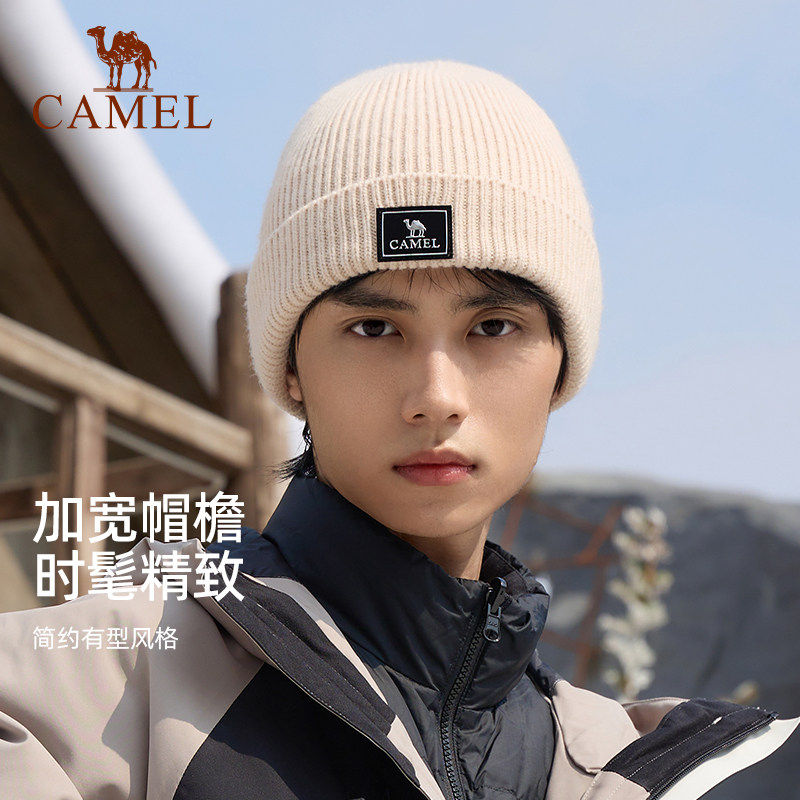 骆驼户外针织毛线帽男女东北防寒保暖冷帽护耳大头围加厚包头帽子