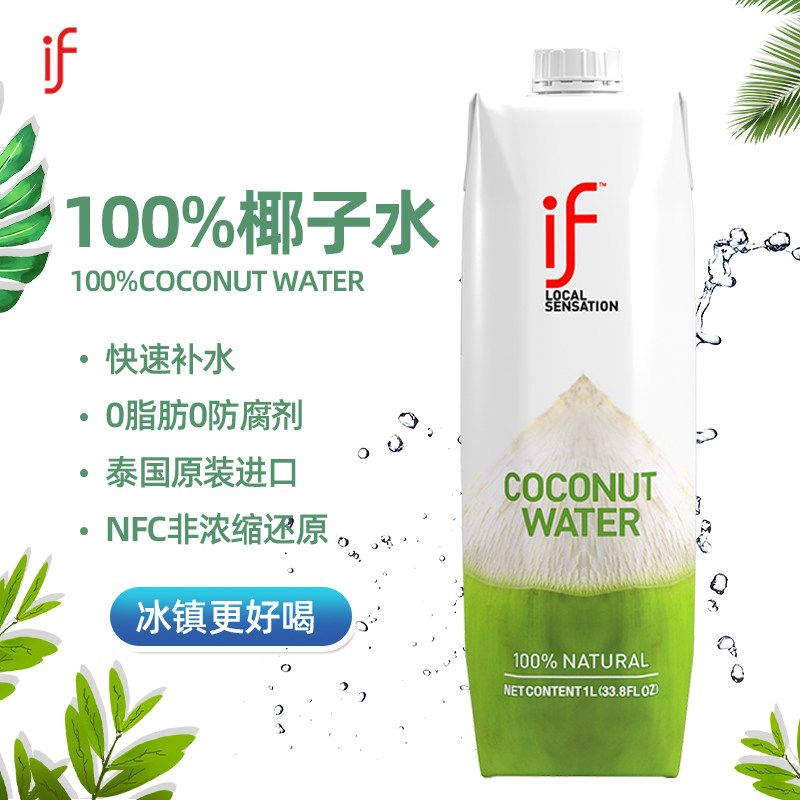 if百分百纯椰子水1L*12大瓶装整箱泰国进口果汁饮料椰青水nfc椰汁