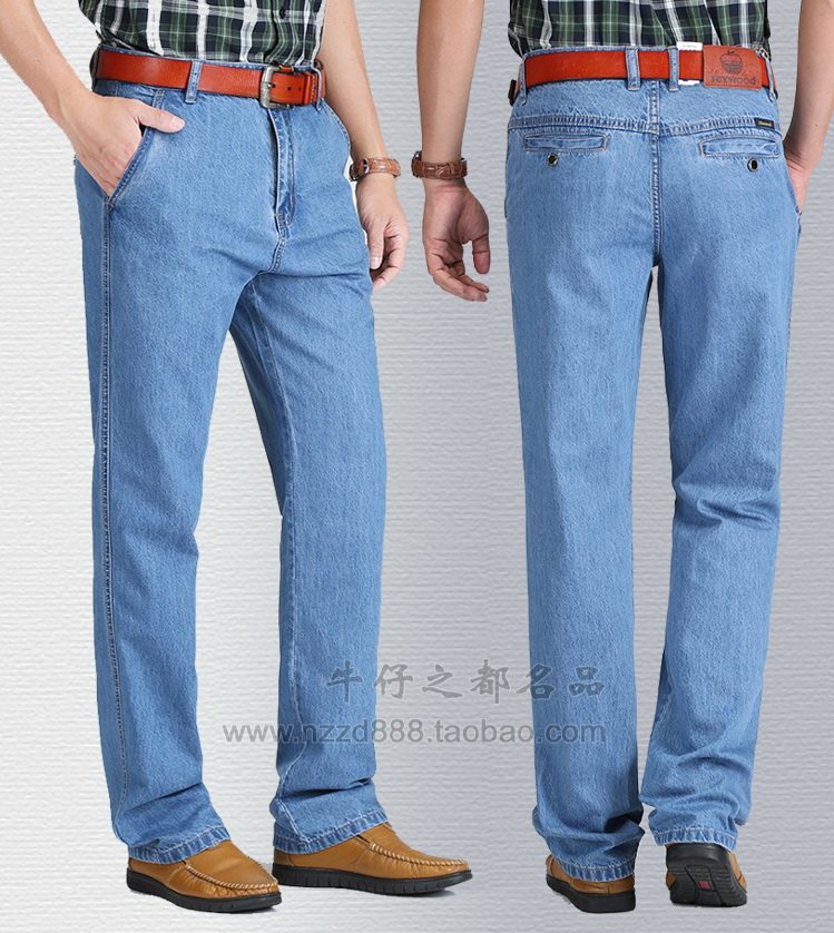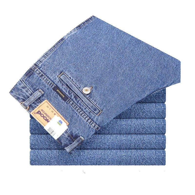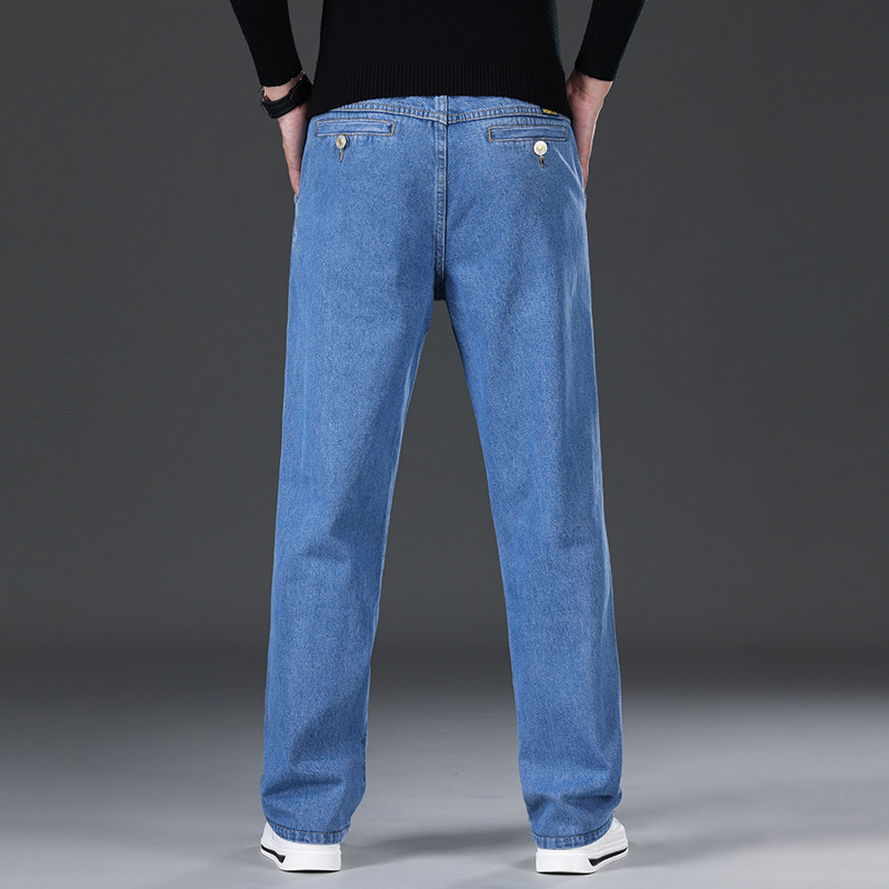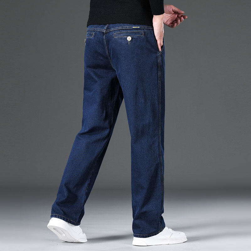 苹果牛仔裤男士秋冬款中年商务中高腰宽松直筒中老年斜袋口纯棉