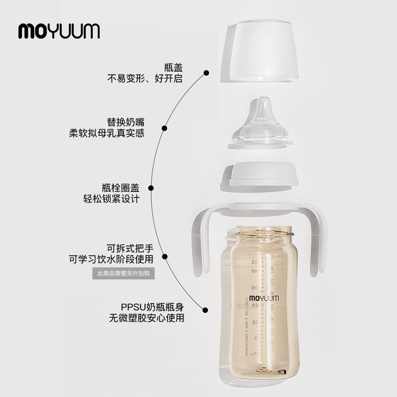 MOYUUM宝宝PPSU奶瓶0-3-6个月-1岁+防摔耐高温防胀气婴幼儿
