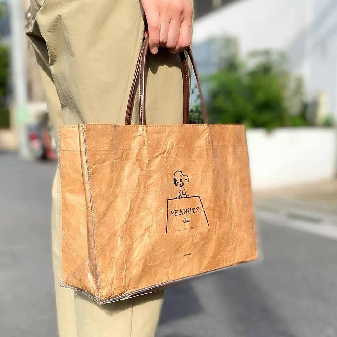 日韩史努比轻便购物袋PVC单肩包手提可水洗牛皮纸日常搭配通勤包