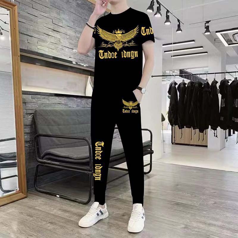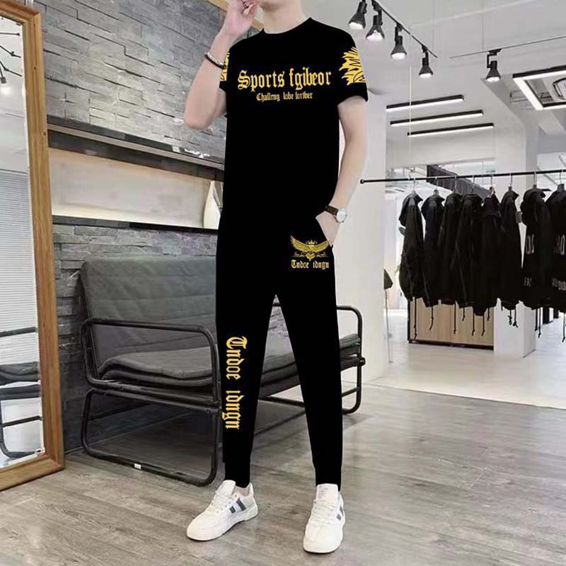 男士短袖长裤两件套夏季