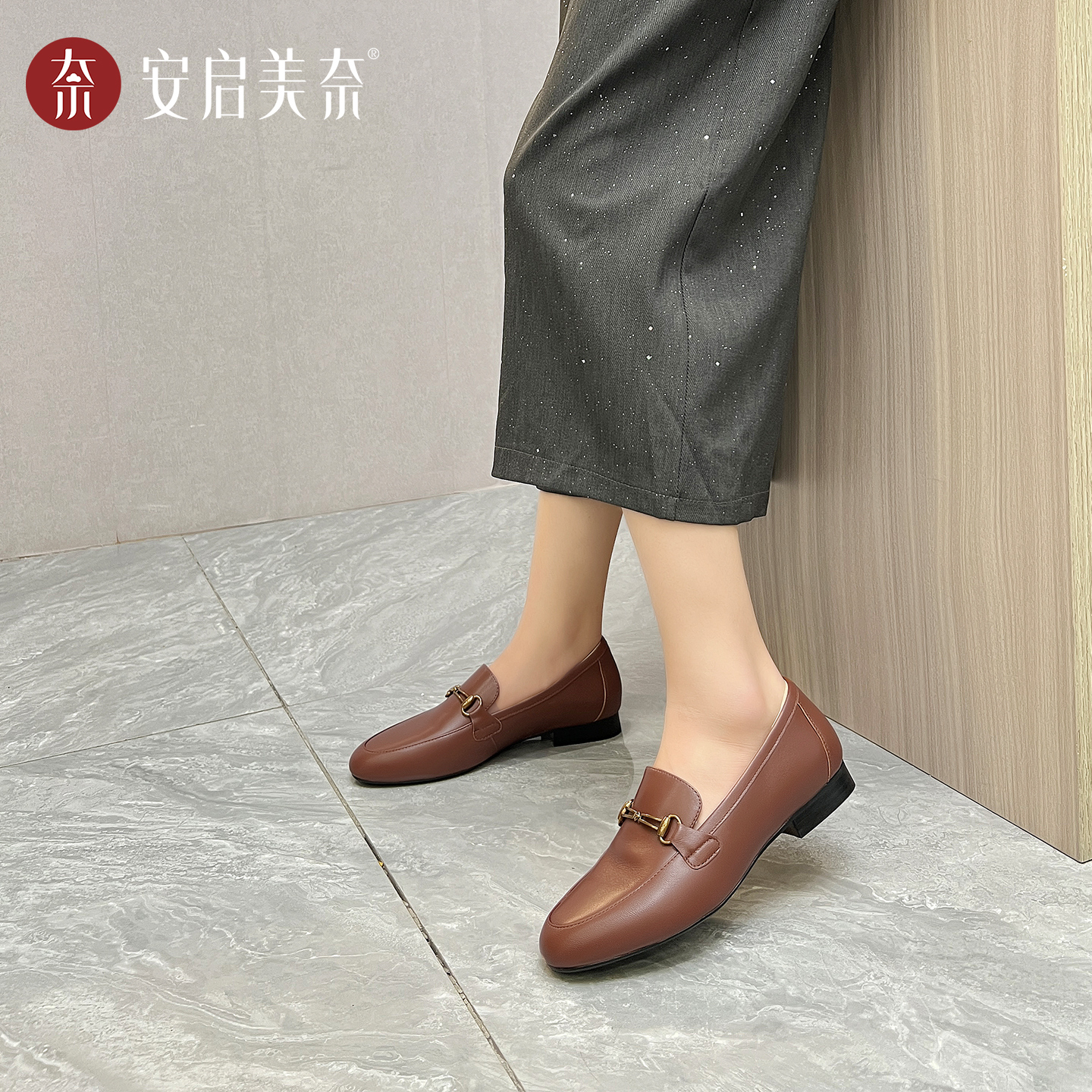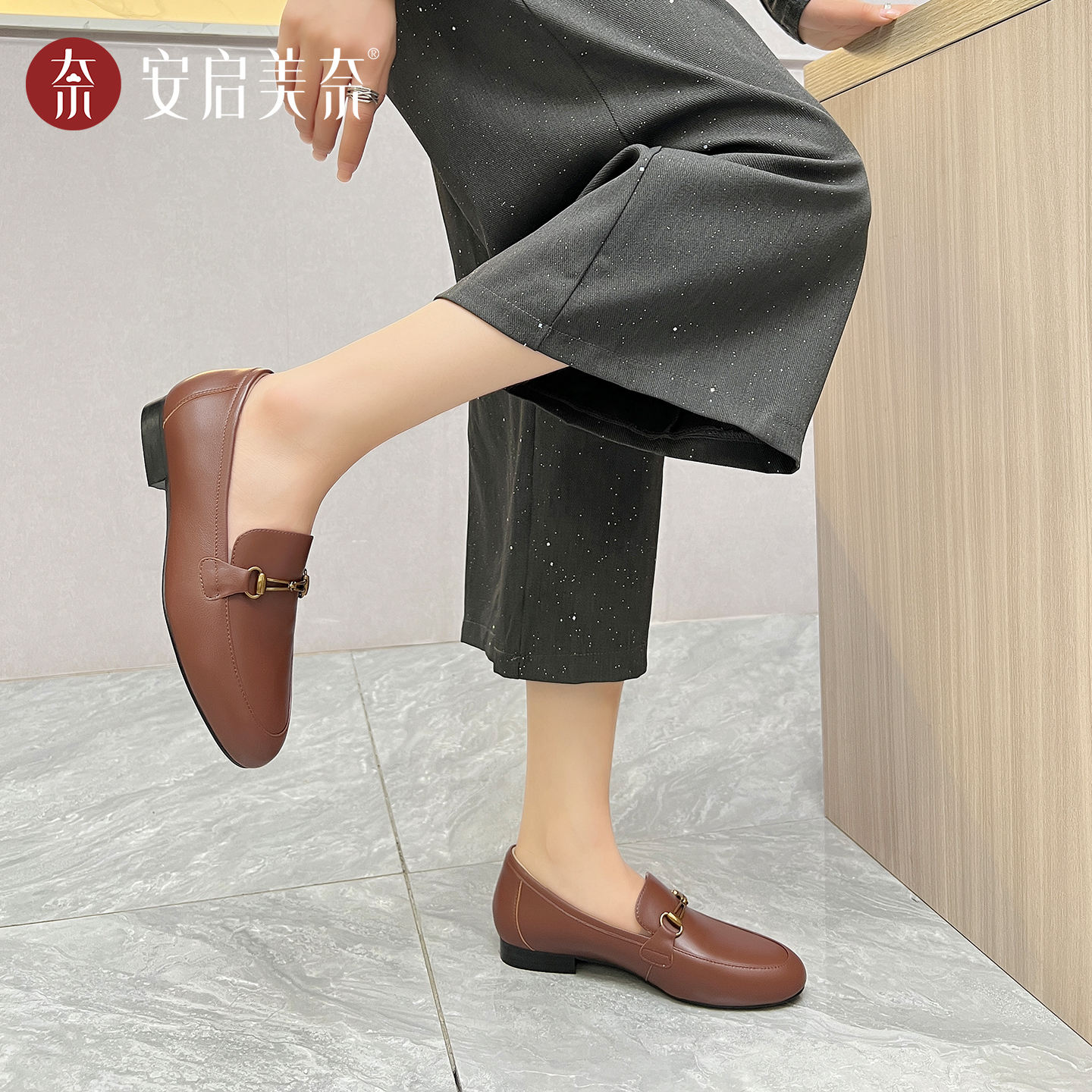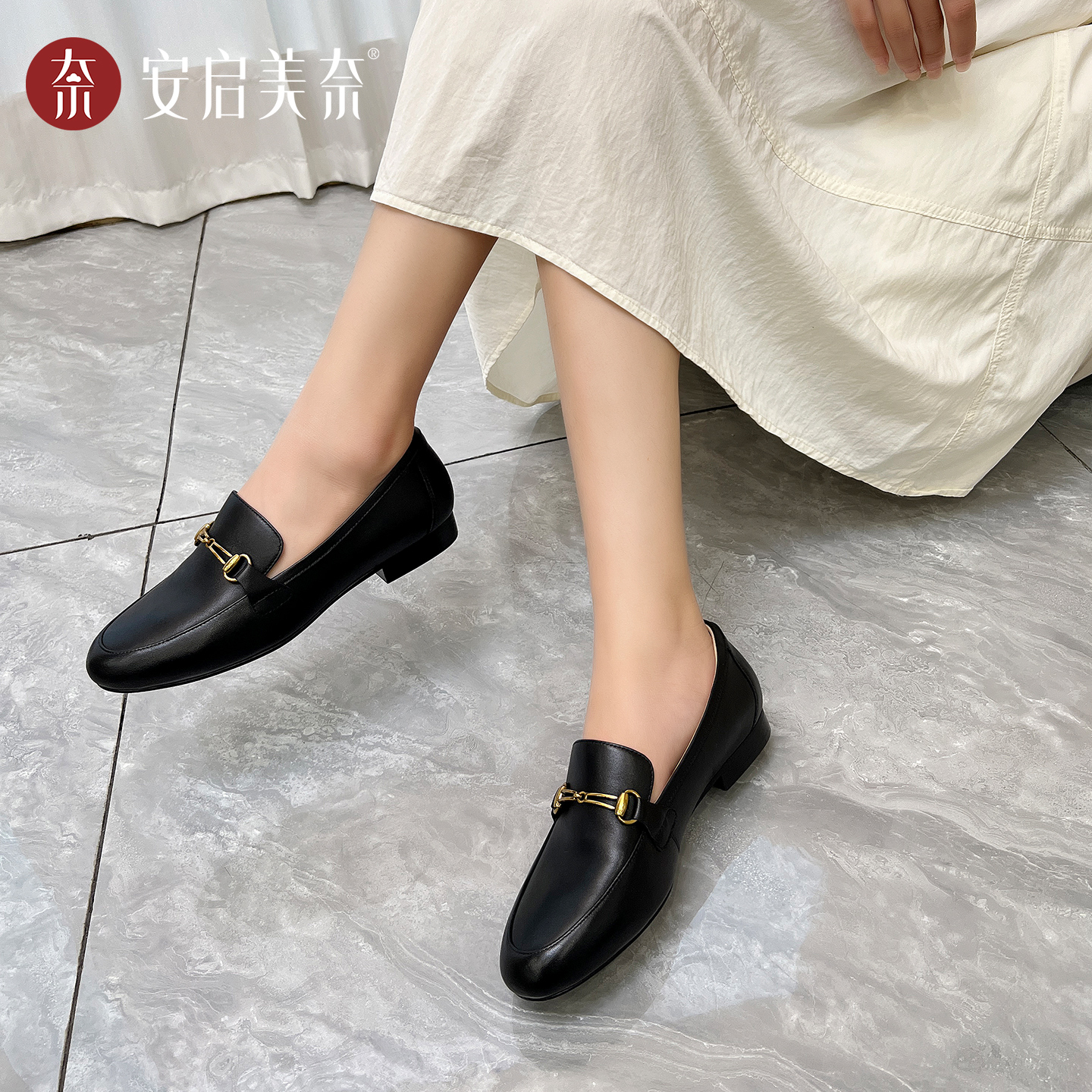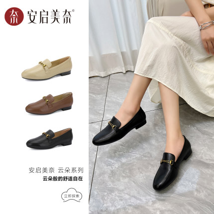 安启美奈云朵系列羊皮浅口时尚乐福鞋春秋通勤散步旅游休闲鞋百搭