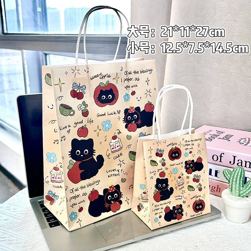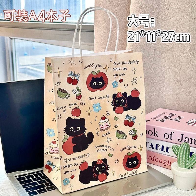 小黑猫高颜值ins牛皮纸袋学生精美送礼礼品包装袋卡通可爱手提袋