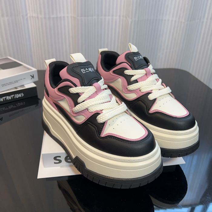 欧货松糕厚底鞋女小白鞋粉色休闲熊猫板鞋增高拼色真皮运动休闲鞋