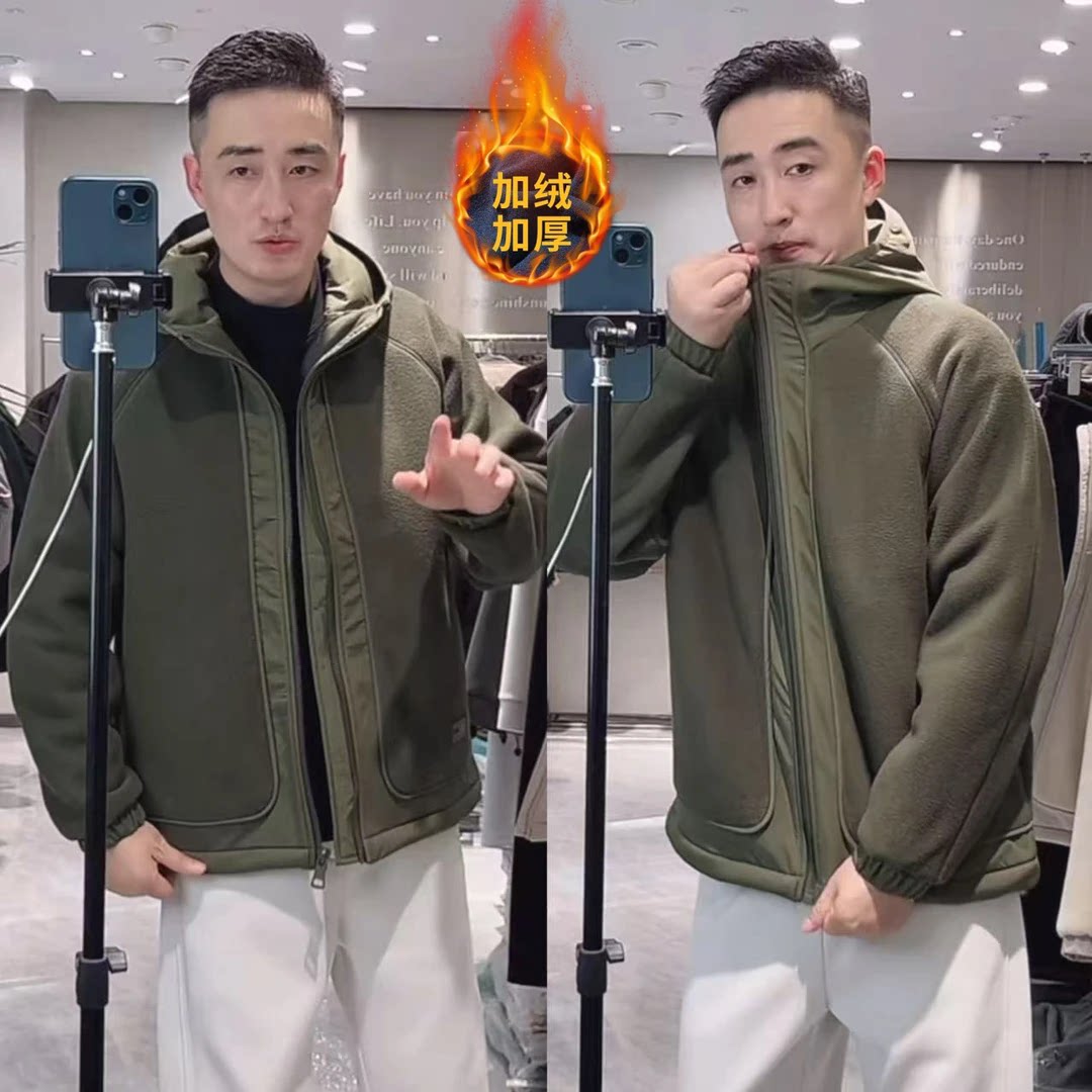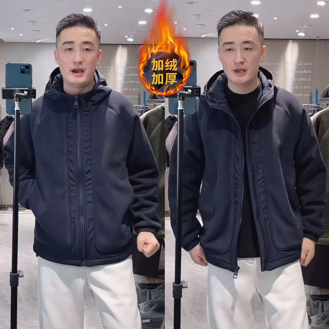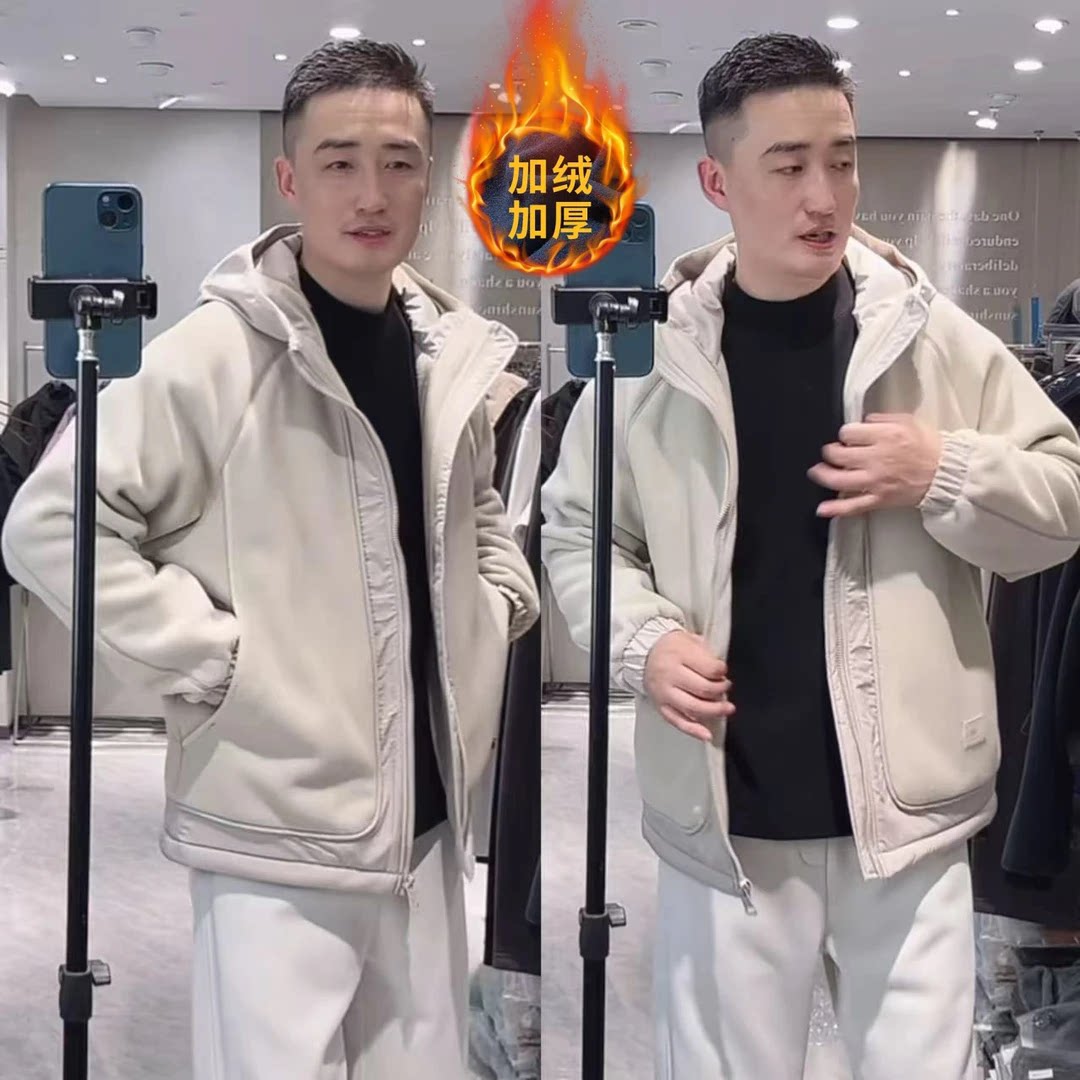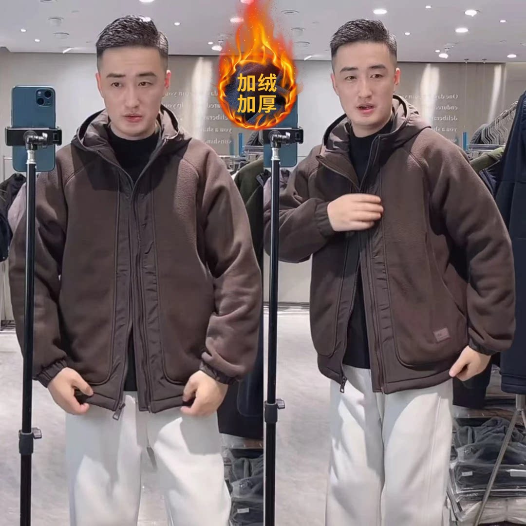 【赢家】冬季加厚摇粒绒拉链拼接软糯保暖连帽棉衣外套DM-58606