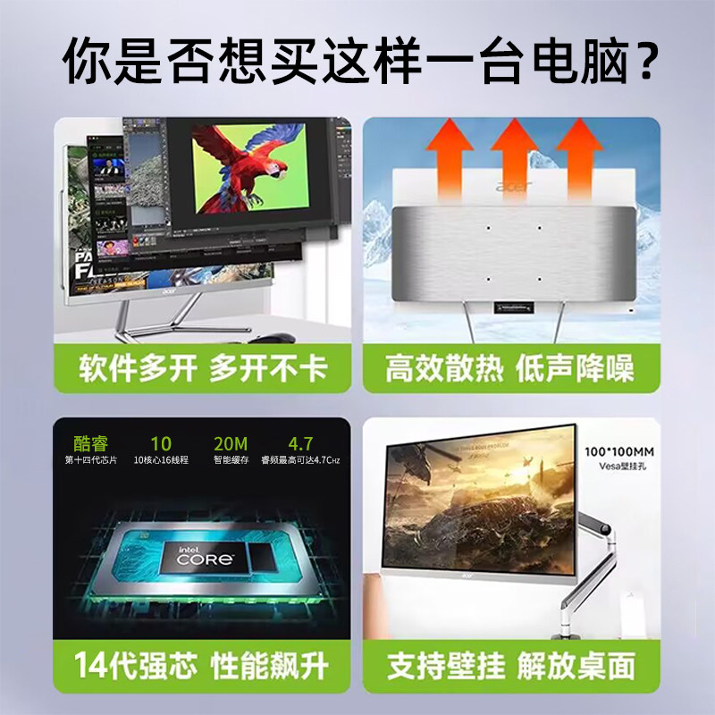宏碁Acer蜂鸟一体机电脑23.8英寸IPS高清屏13代酷睿i3i5家用商务办公游戏前台收银支持壁挂台式主机全套整机