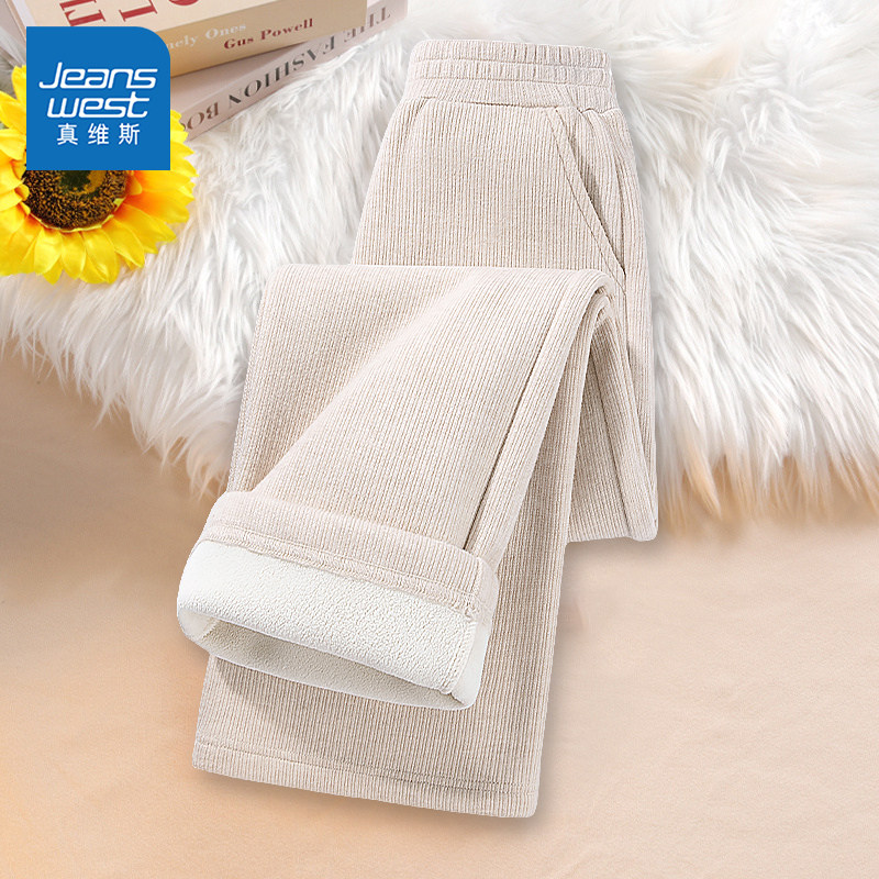 真维斯童装女童加绒裤子女大童秋冬款加厚阔腿裤儿童冬季保暖长裤