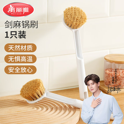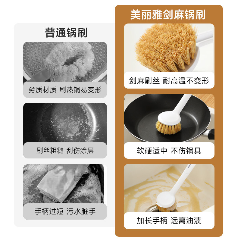 美丽雅剑麻锅刷不伤锅不易粘油厨房专用加长柄椰棕刷锅神器家用