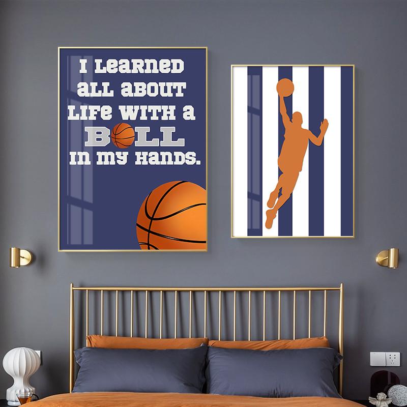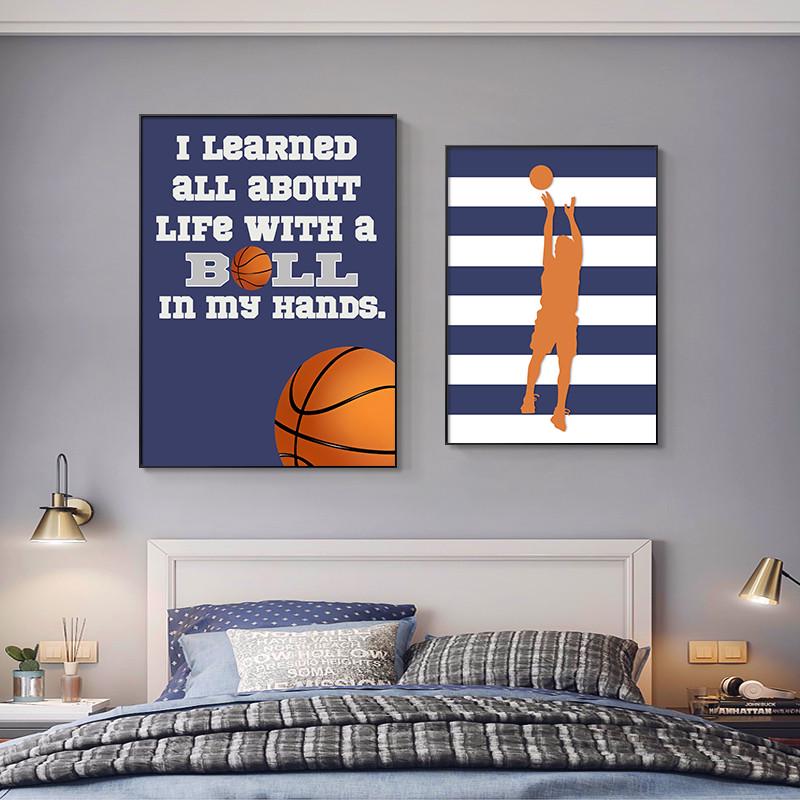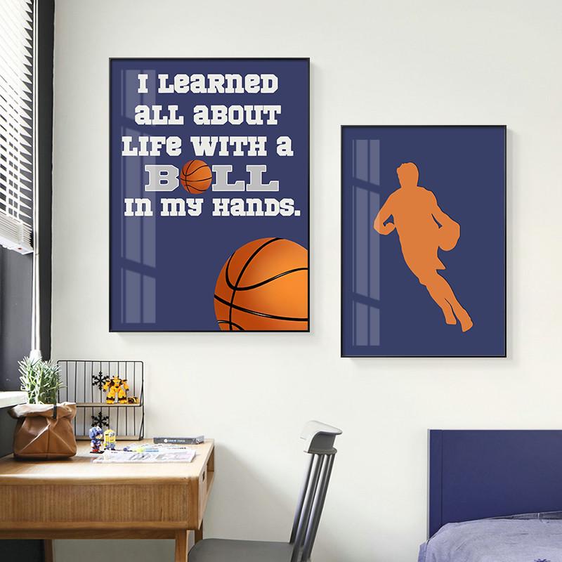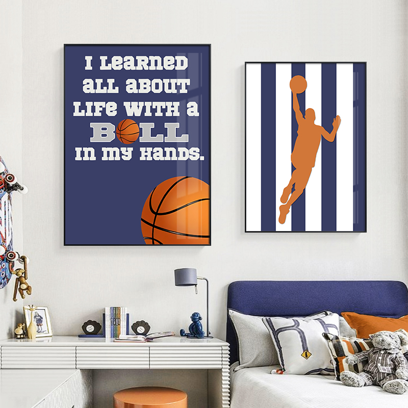 现代简约儿童房装饰画男孩卧室床头画卡通篮球字母青少年房间挂画