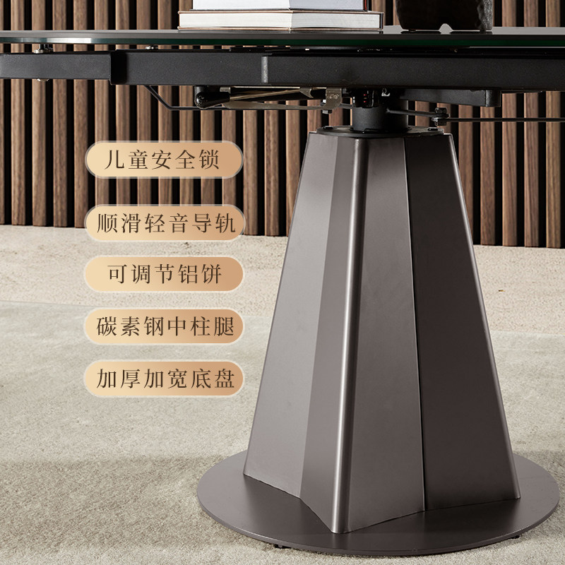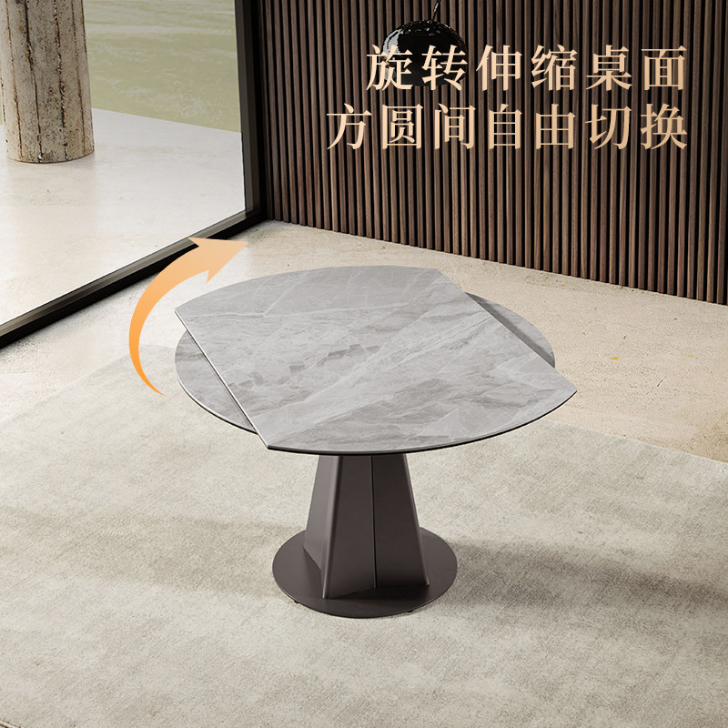 顾家家居意式轻奢岩板餐桌方变圆可伸缩餐桌PT7212T-A政企补贴