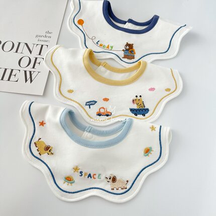 韩版新生儿防吐奶围兜A类纯棉宝宝防水口水巾360°旋转婴儿围嘴软