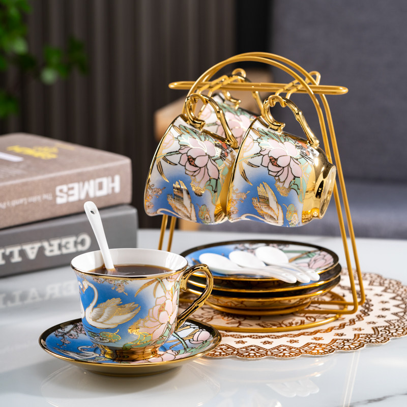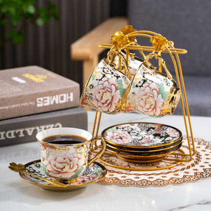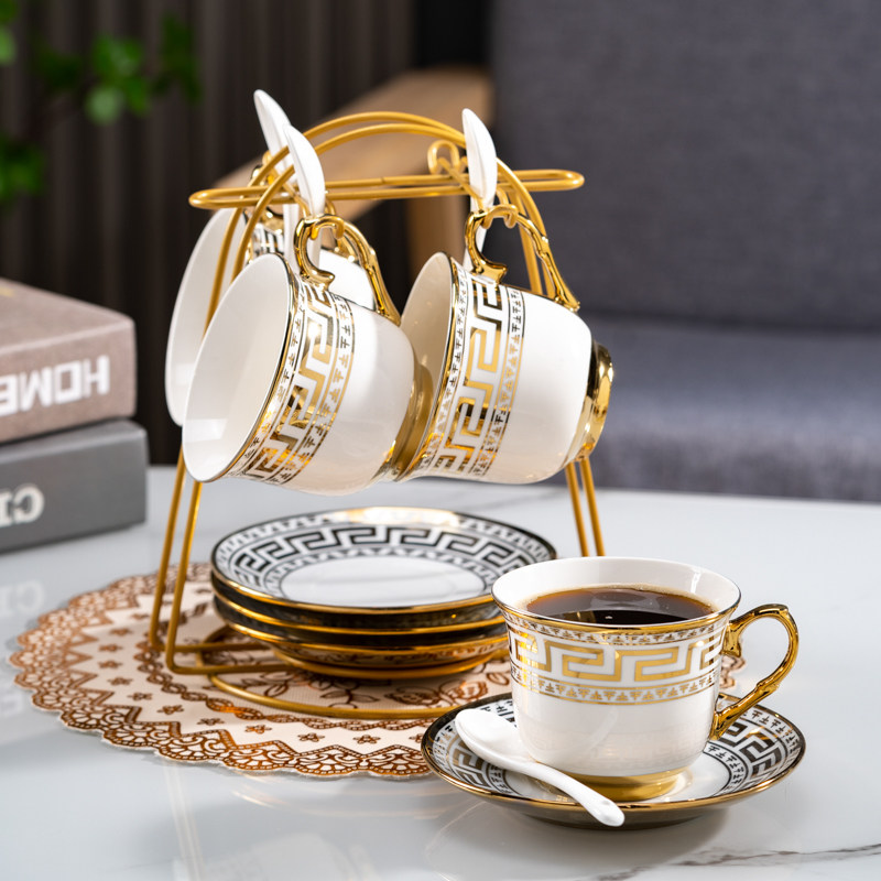 陶瓷欧式轻奢咖啡杯美容院花茶杯客厅茶具下午茶金边水杯马克杯