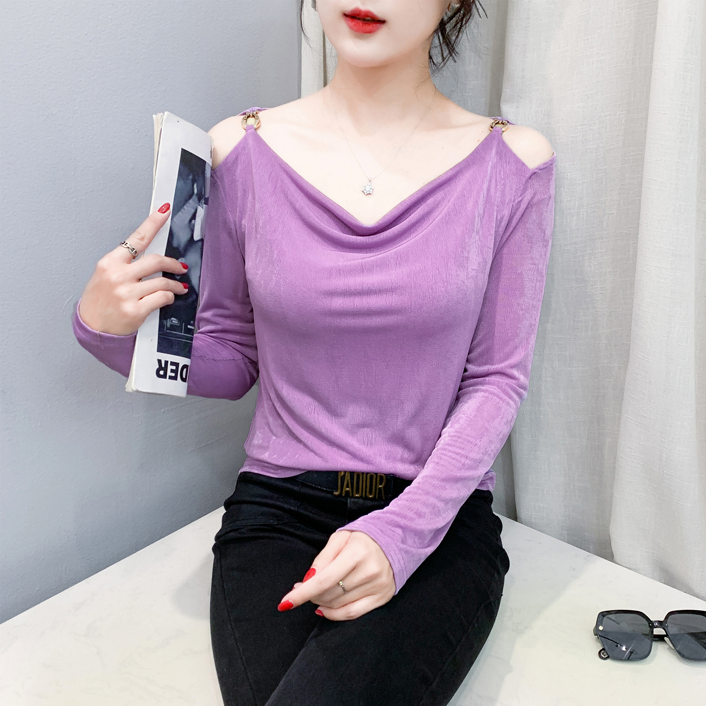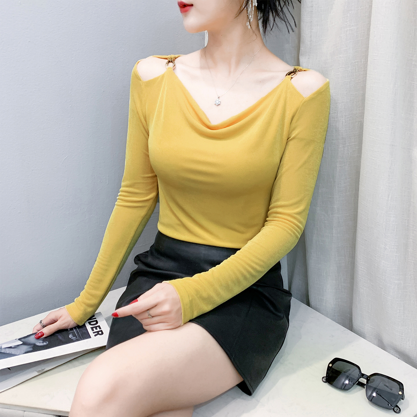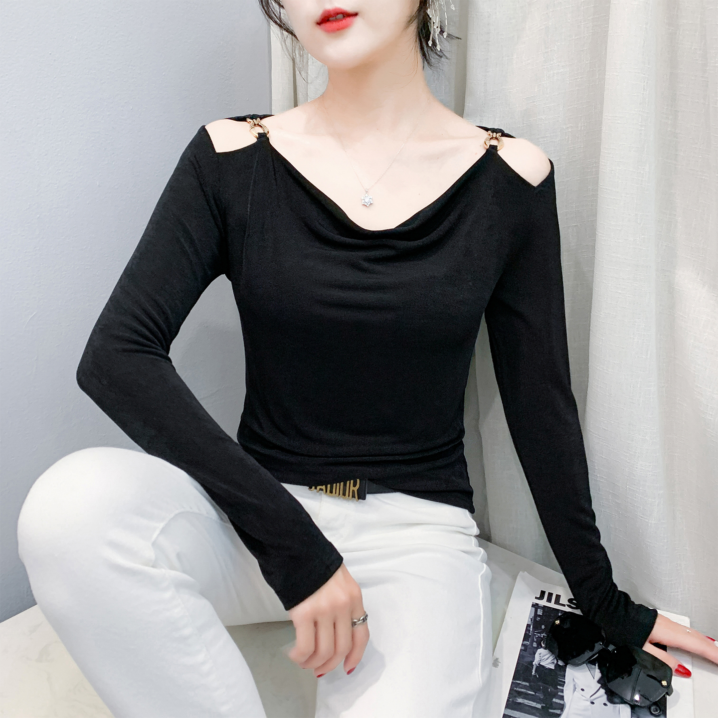 欧货打底衫女2025秋装新款设计感镂空上衣洋气百搭露肩长袖t恤潮
