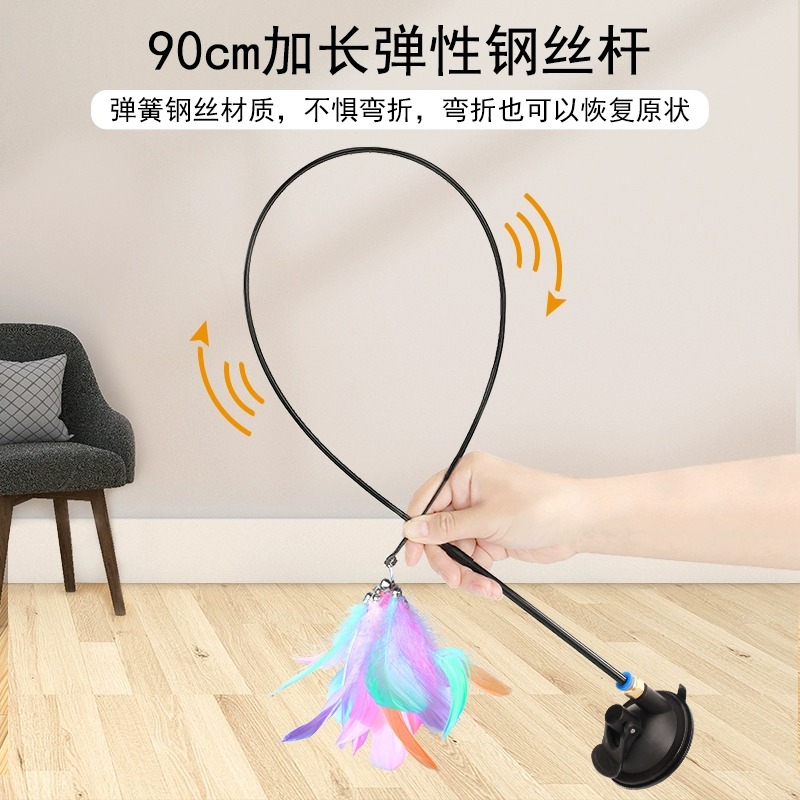 猫玩具吸盘逗猫棒猫咪自嗨解闷神器懒人自动逗猫棒羽毛带铃铛耐咬