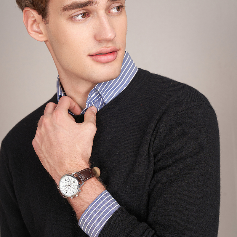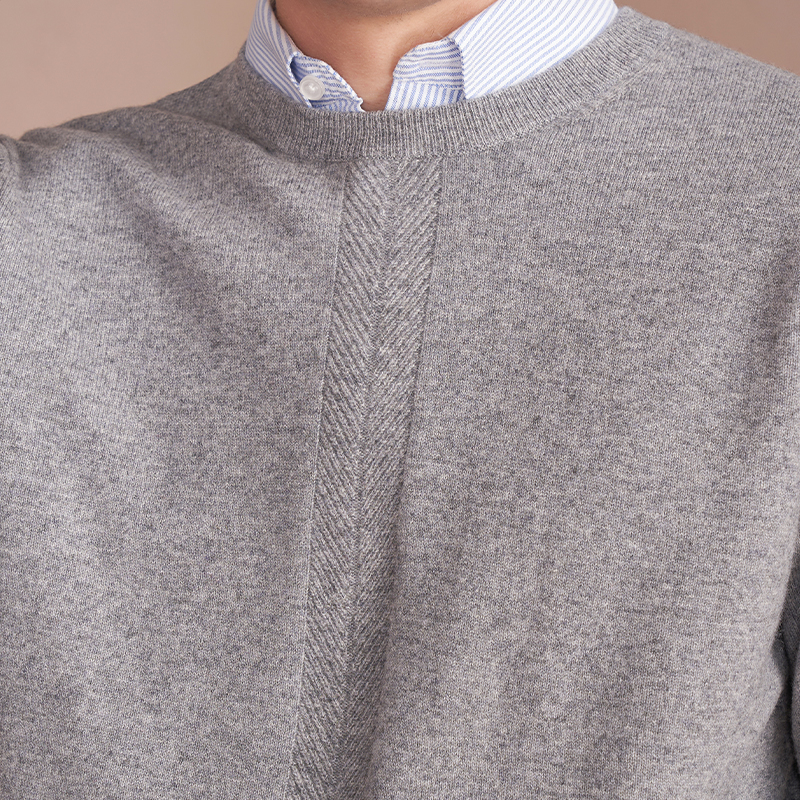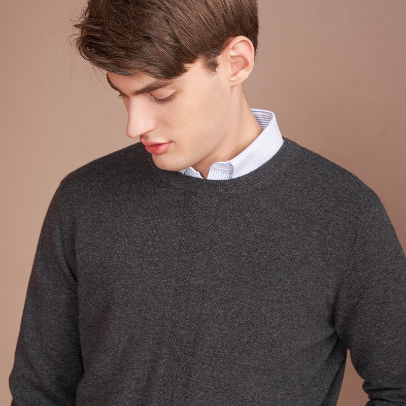 鹿王100%羊绒衫男士衬衫领假两件平针男商务保暖简约套衫春秋新款