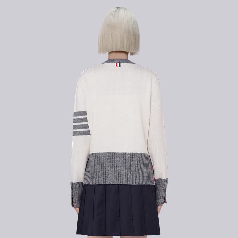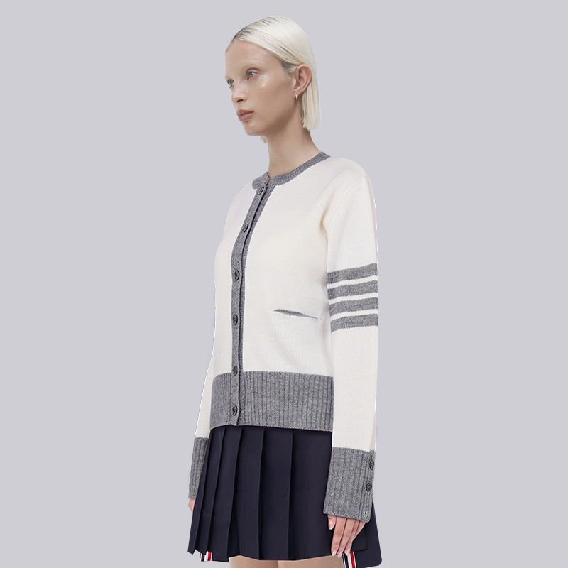 TB针织毛衣女2025新款圆领拼色针织开衫上衣外套女纽扣开衫学院风
