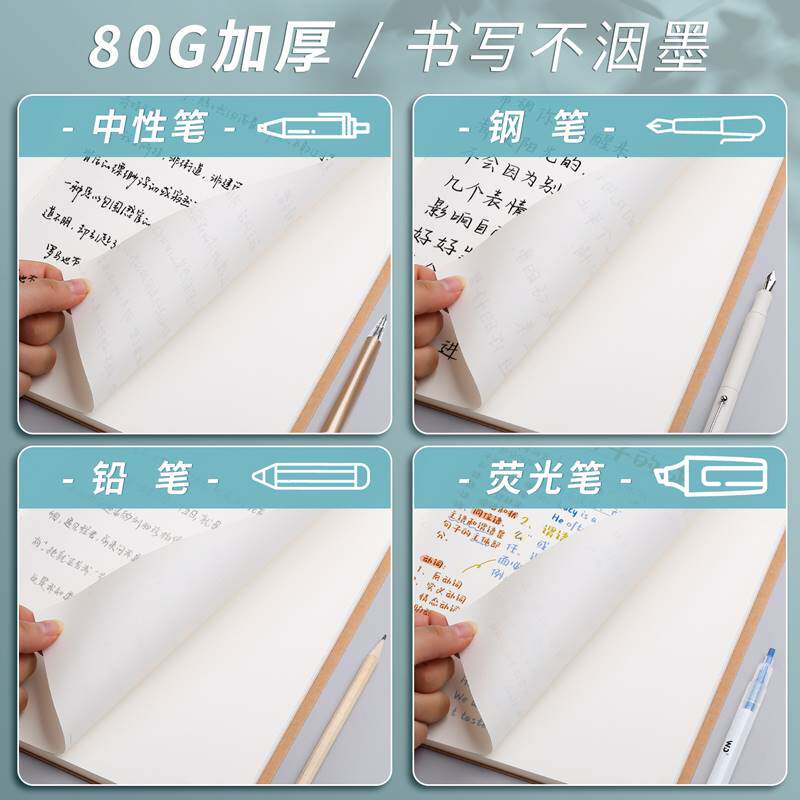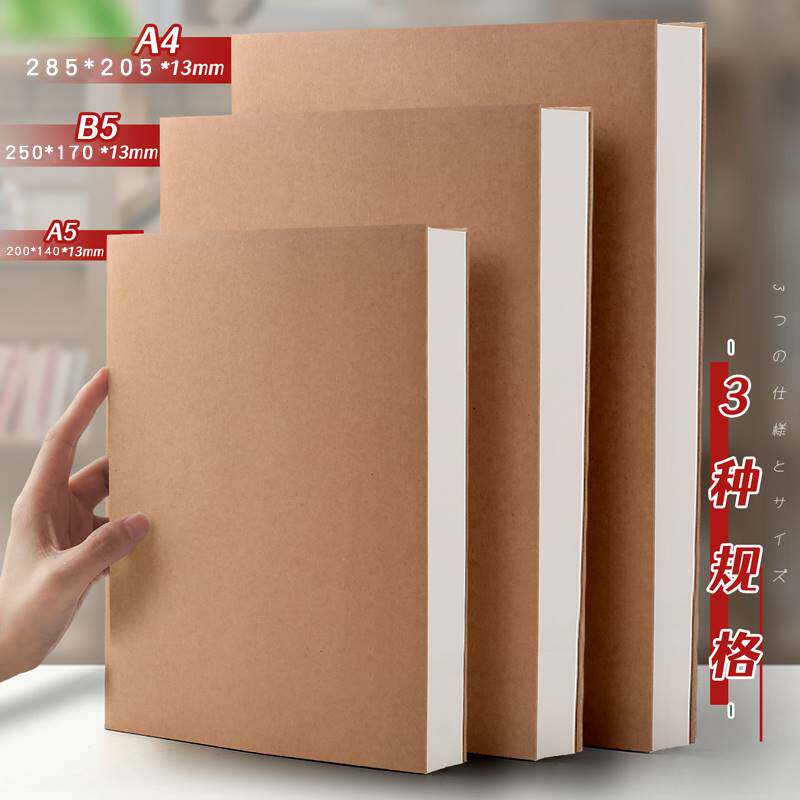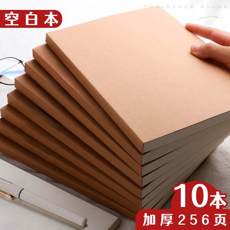 a4空白本牛皮纸笔记本本子无格子无线学生用加厚b5白页白纸大本子a5手绘本绘图写草稿本平摊思维导图纯白素色