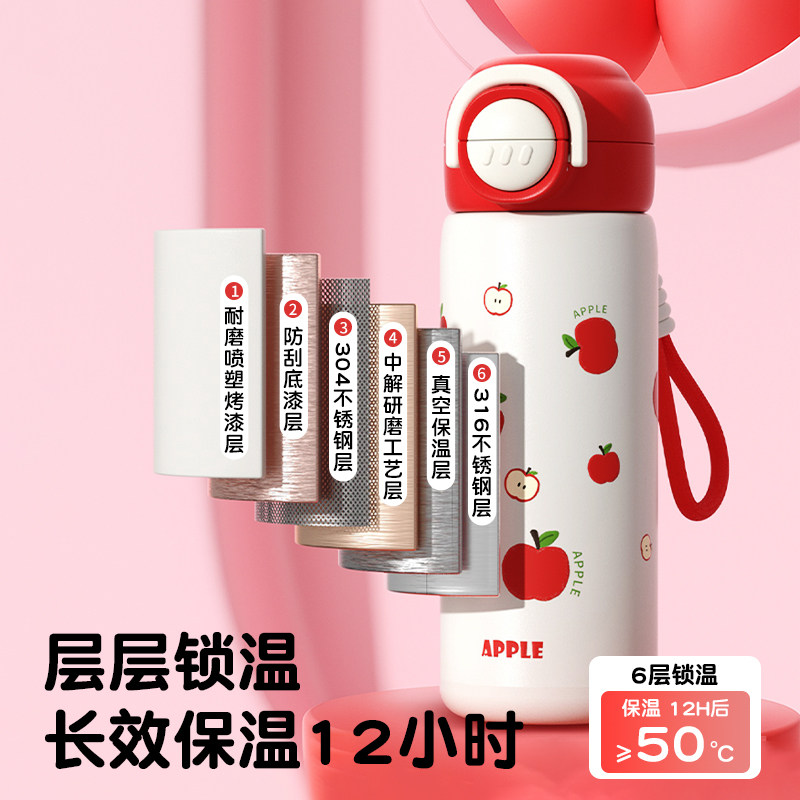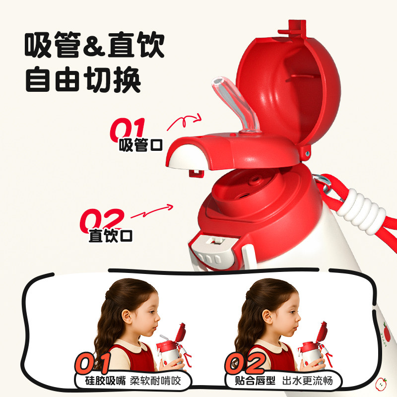 保温杯女新款2025高颜值水杯学生儿童上学专用男款便携壶吸管杯子