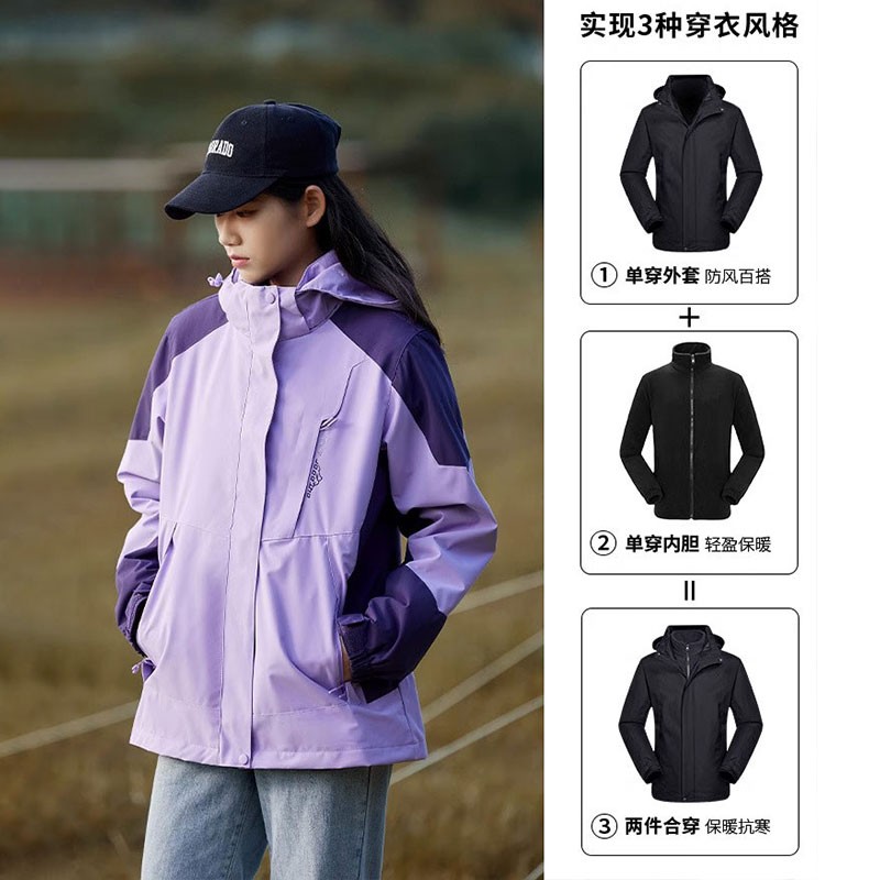 2025新款秋冬季冲锋衣男女三合一可拆卸小个子登山服防风防水外套