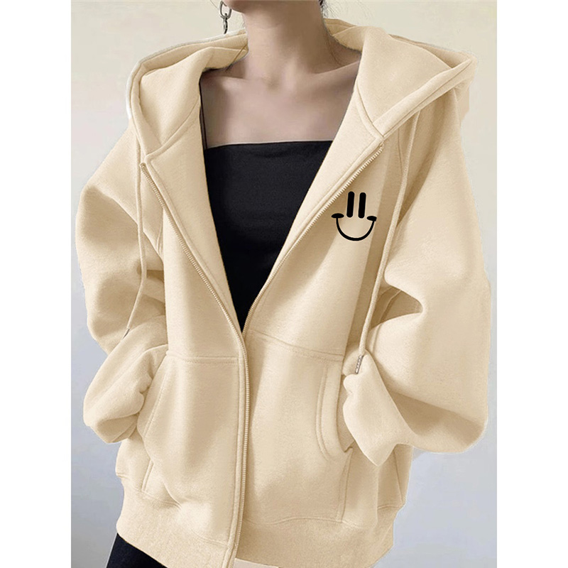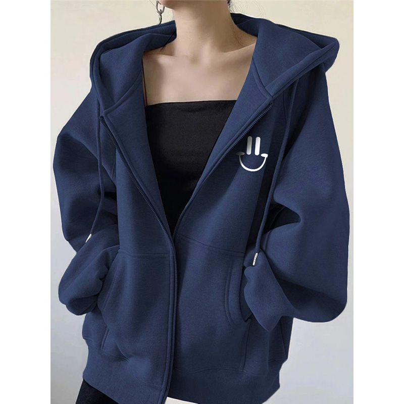 即墨品牌上新纯棉连帽卫衣女秋冬韩系慵懒风拉链开衫加绒加厚外套