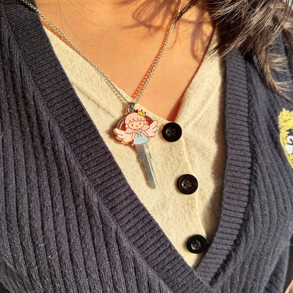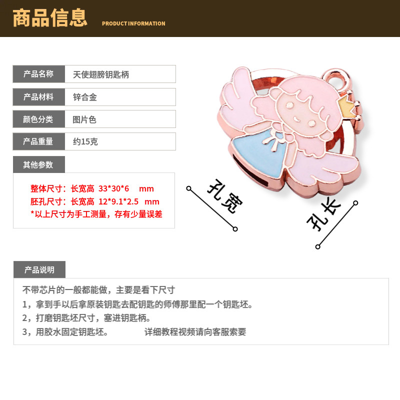 钥匙改装可爱天使翅膀电动踏板摩托车通用门机械钥匙柄替换头礼物