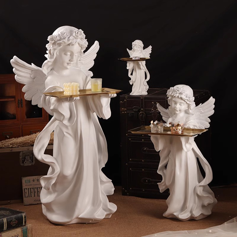 欧式天使摆件家居饰品美式石膏雕塑可爱女孩工艺品电视柜酒柜摆设