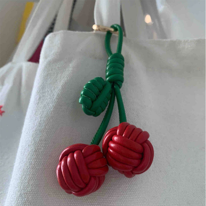 樱桃挂件仿羊皮手工编织猴拳结钥匙扣迪桑娜包包车载挂饰创意礼物