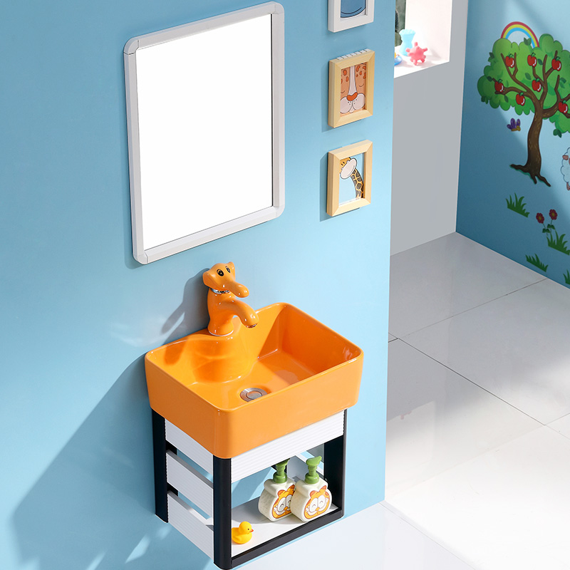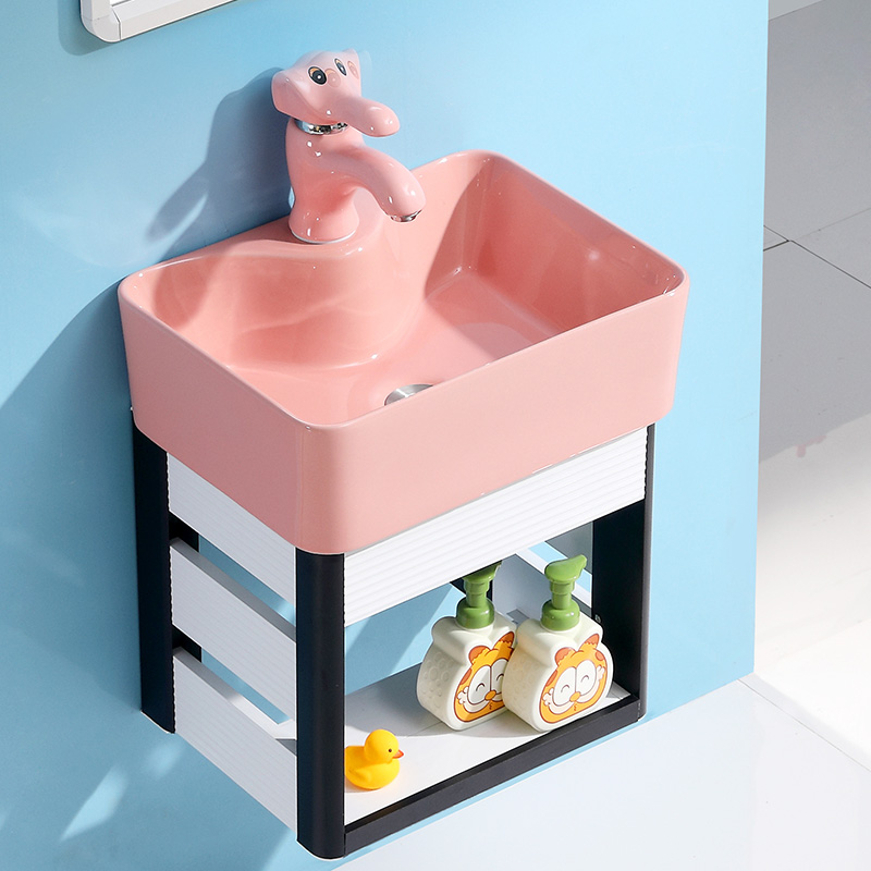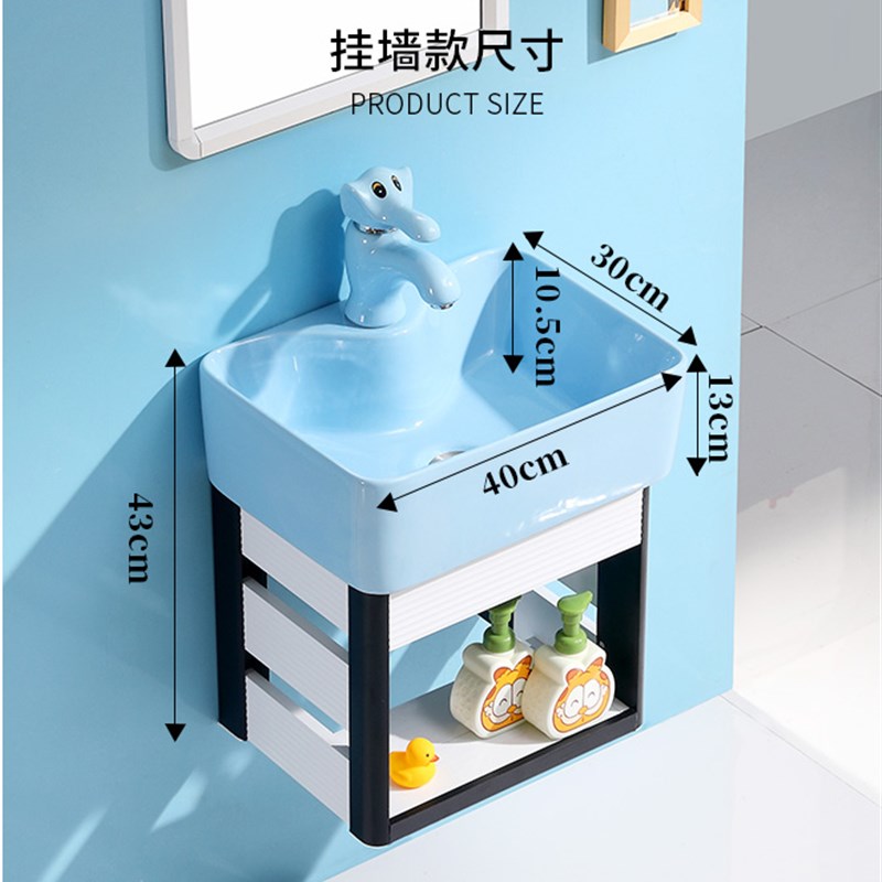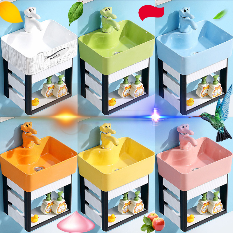挂墙式洗手盆柜组合小户型卡通陶瓷阳台彩色水盆厕所幼儿园洗脸盆