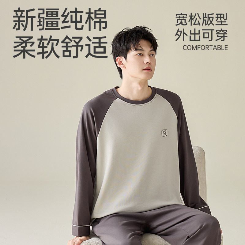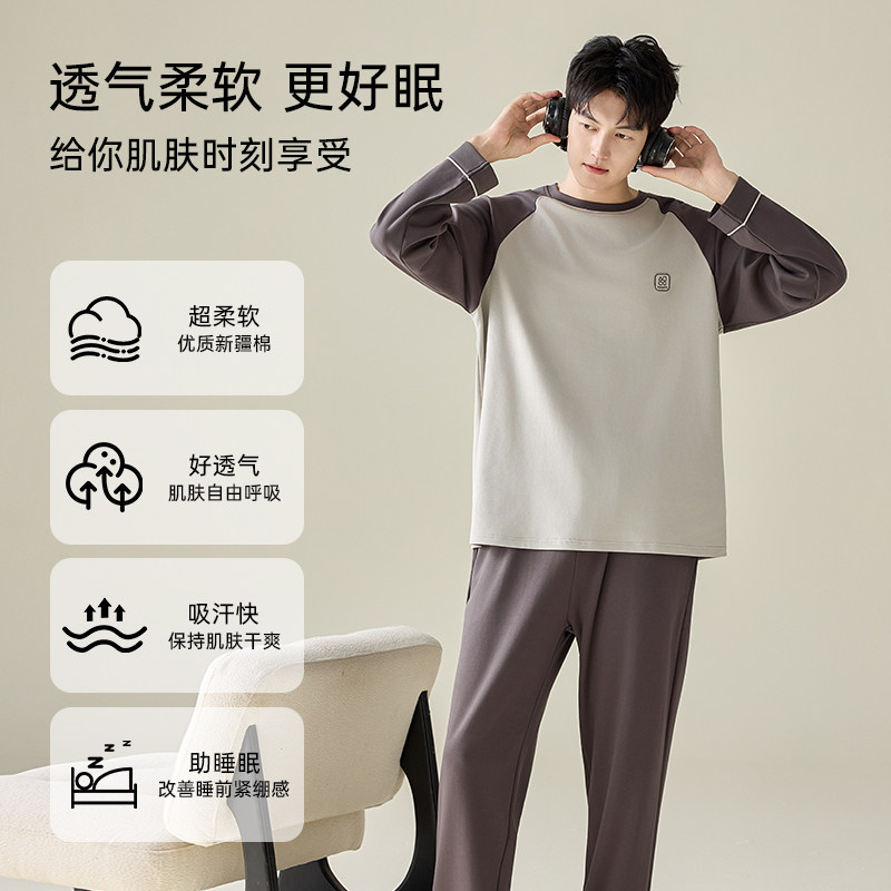 南极人纯棉睡衣男款秋冬季长袖圆领四季通用男生家居服套装可外穿