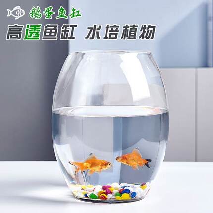 创意水族箱生态圆形玻璃金鱼缸 大号乌龟缸 迷你小型造景鹅蛋鱼缸