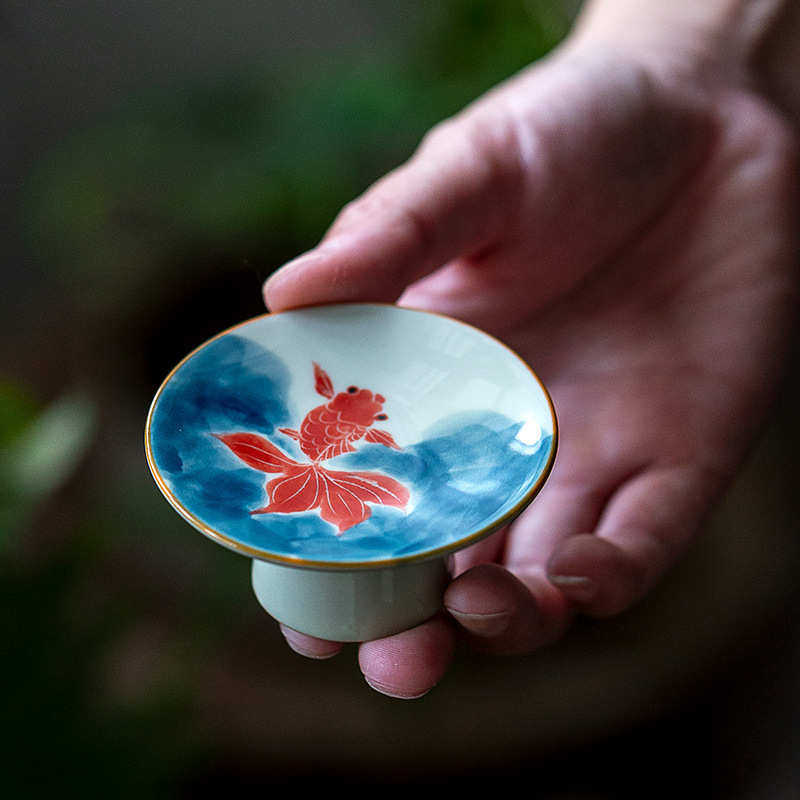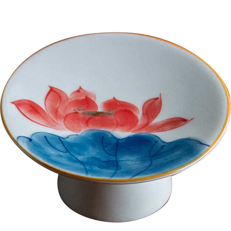 彷古手绘高脚盖置盖托陶瓷功夫茶具壶盖底托家用茶道配件茶杯垫