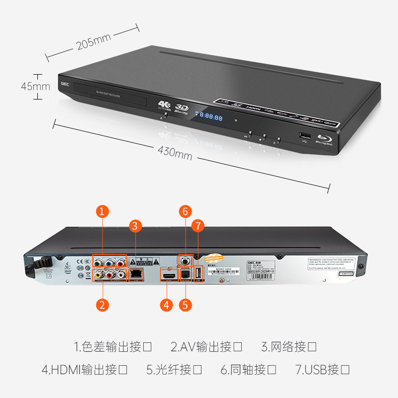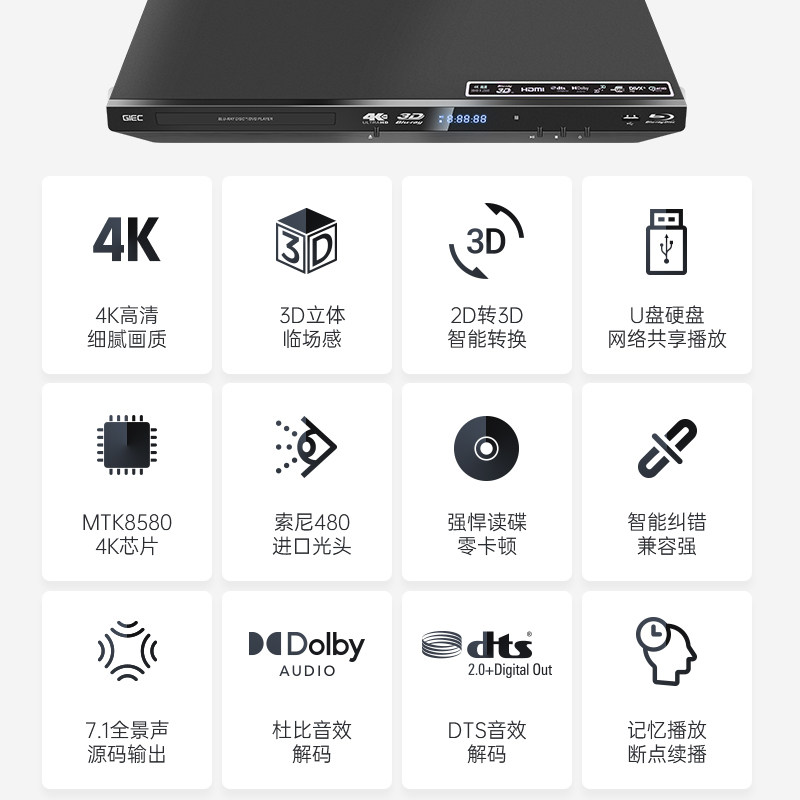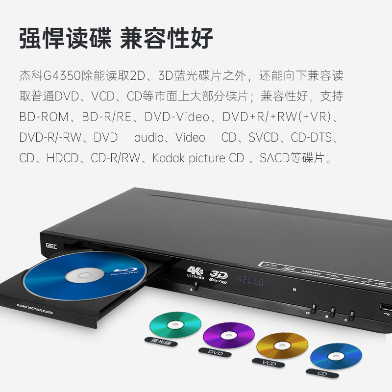 GIEC杰科BDP-G4350家用4k蓝光播放机dvd影碟机高清硬盘光盘播放器