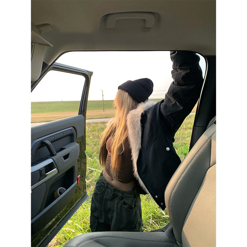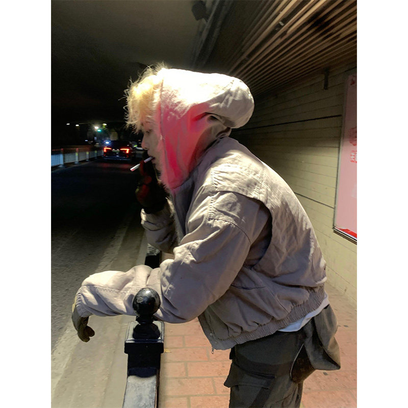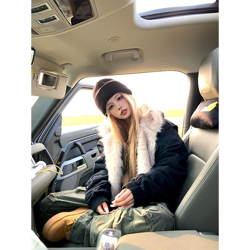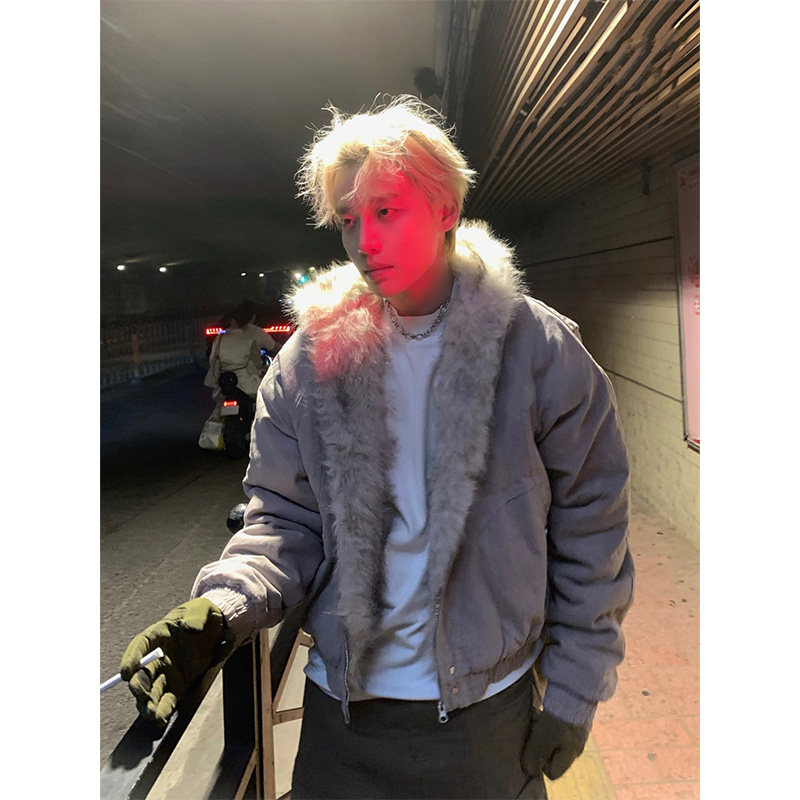 NECOYEP 2025秋冬美式大毛领毛绒连帽棉服男女冬季宽松保暖棉衣潮