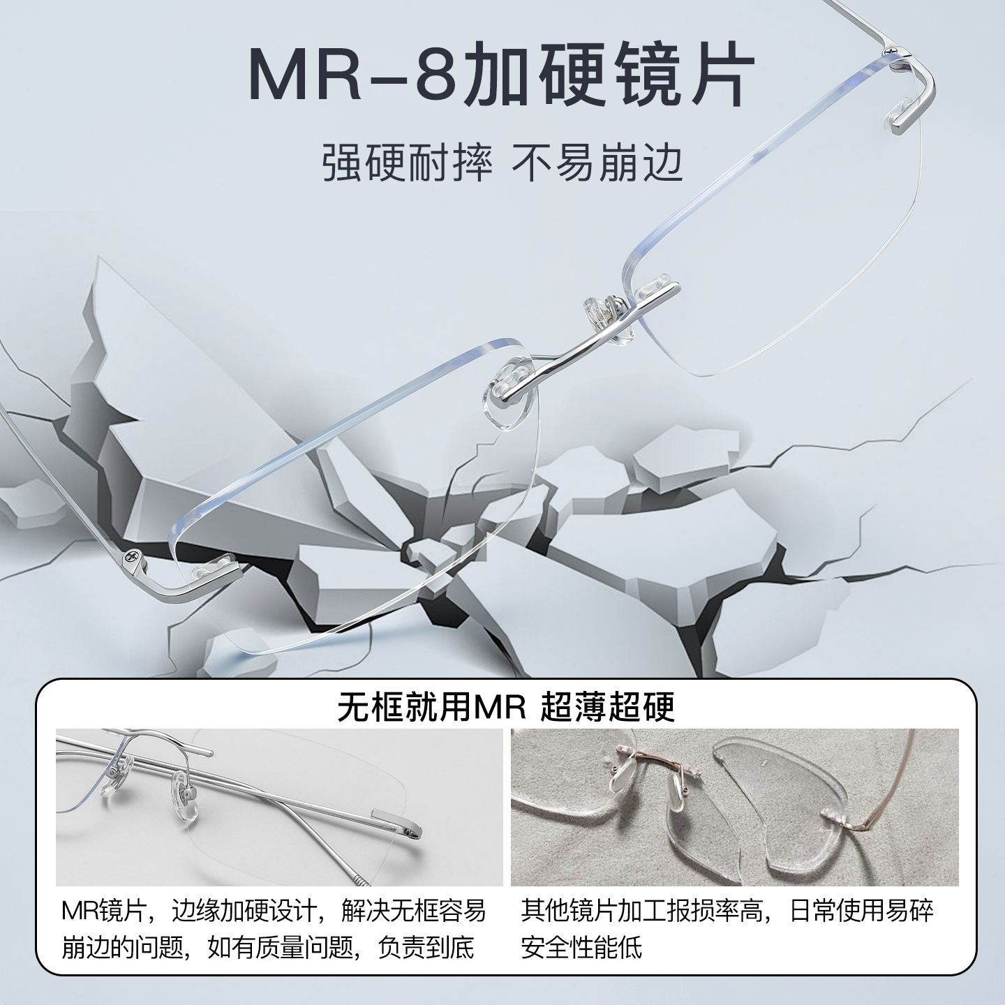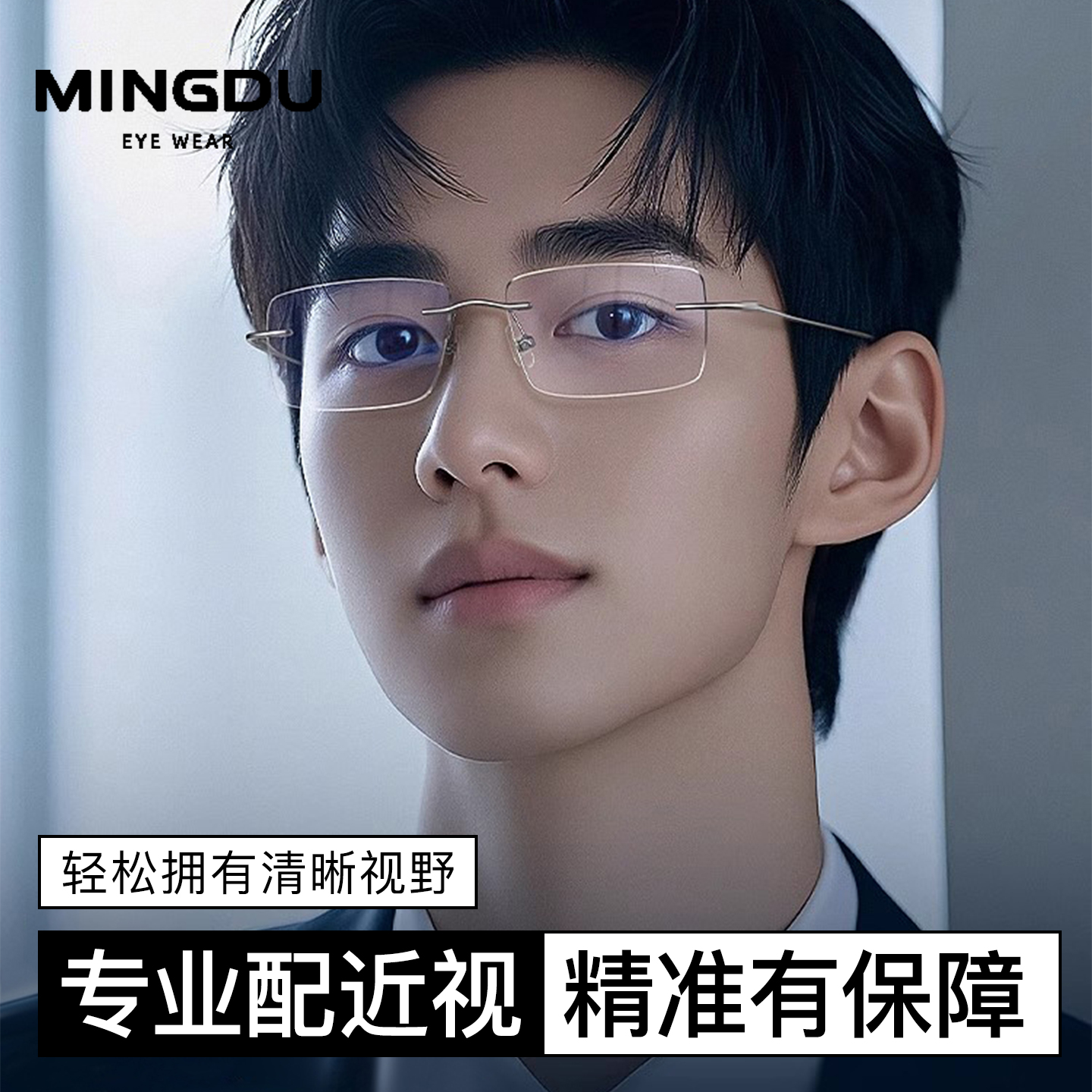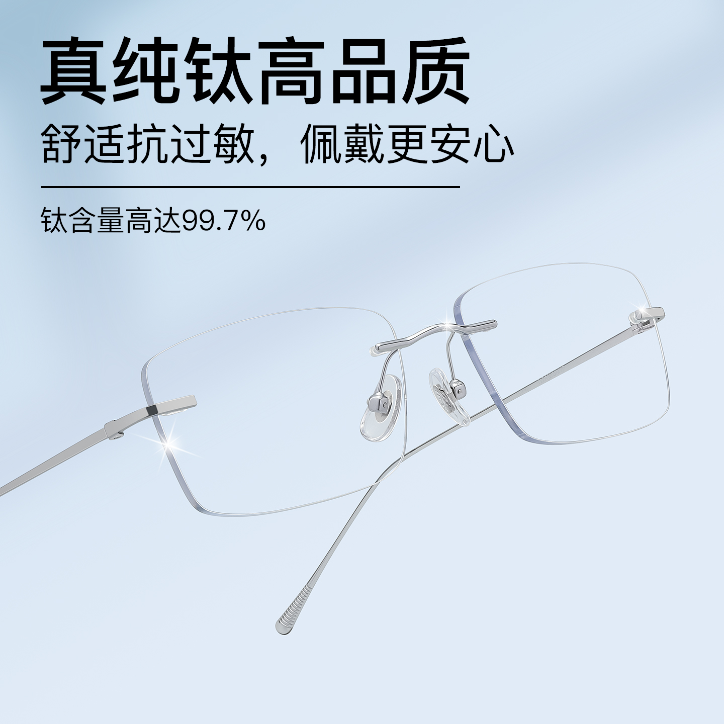 超轻纯钛无框眼镜男士近视眼镜框可配度数变色商务全钛近视眼镜架