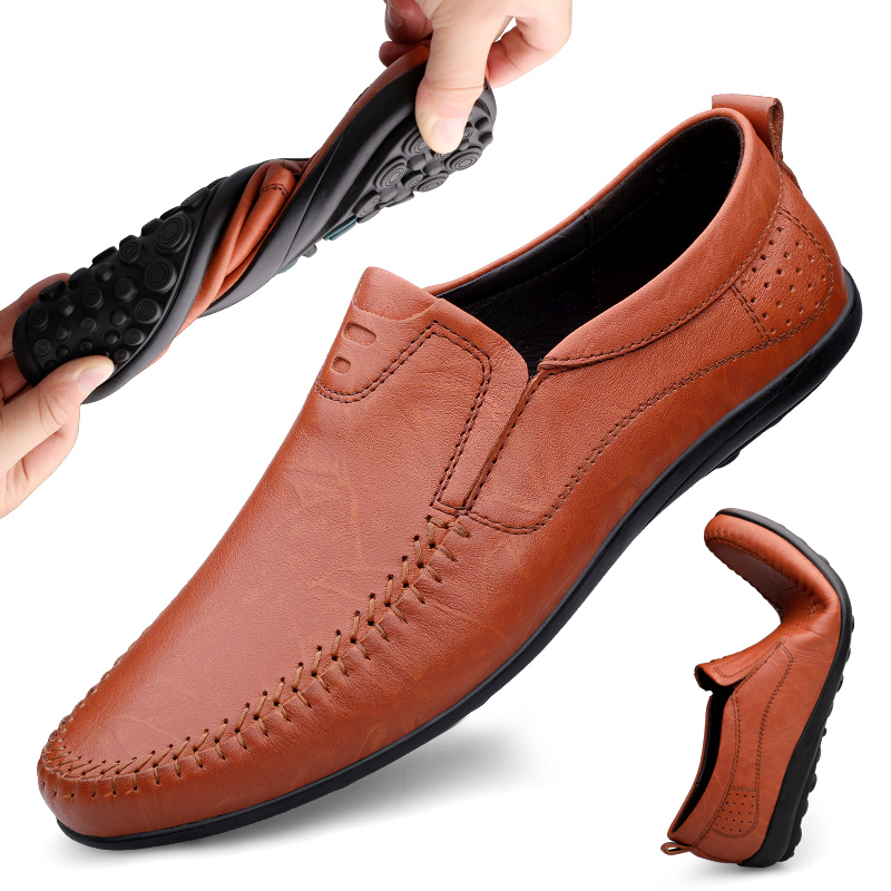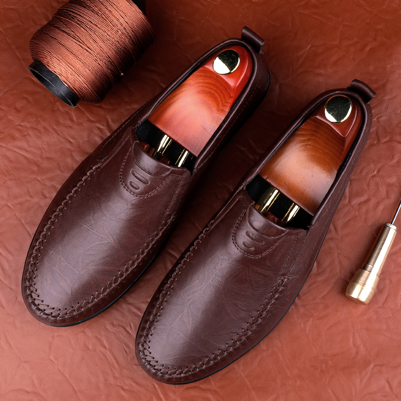 意大利手工豆豆鞋男韩版潮流懒人一脚蹬软底商务休闲驾车皮鞋
