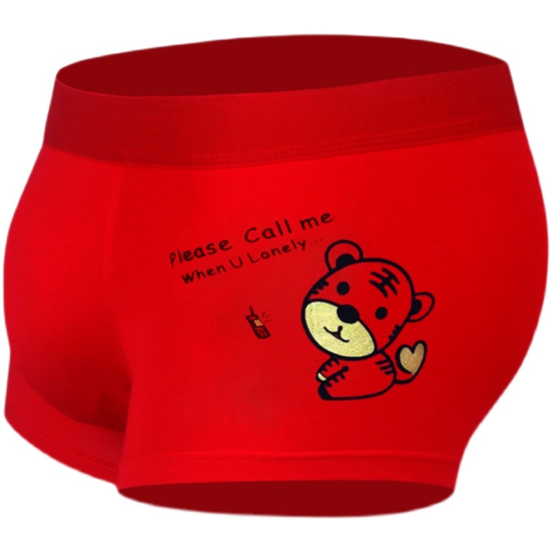 红内裤男本命年属虎年纯棉卡通老虎头可爱个性大红色平角结婚礼物