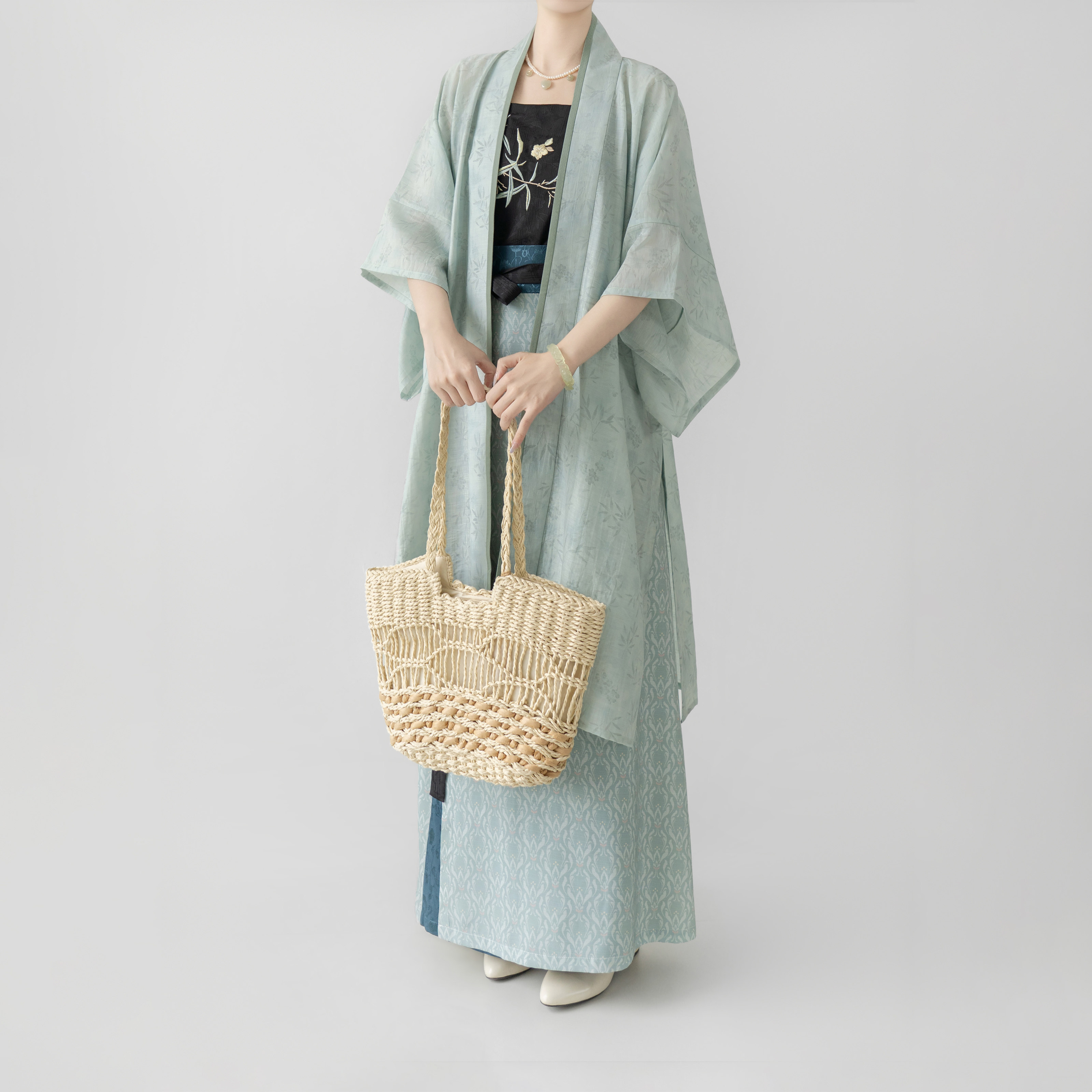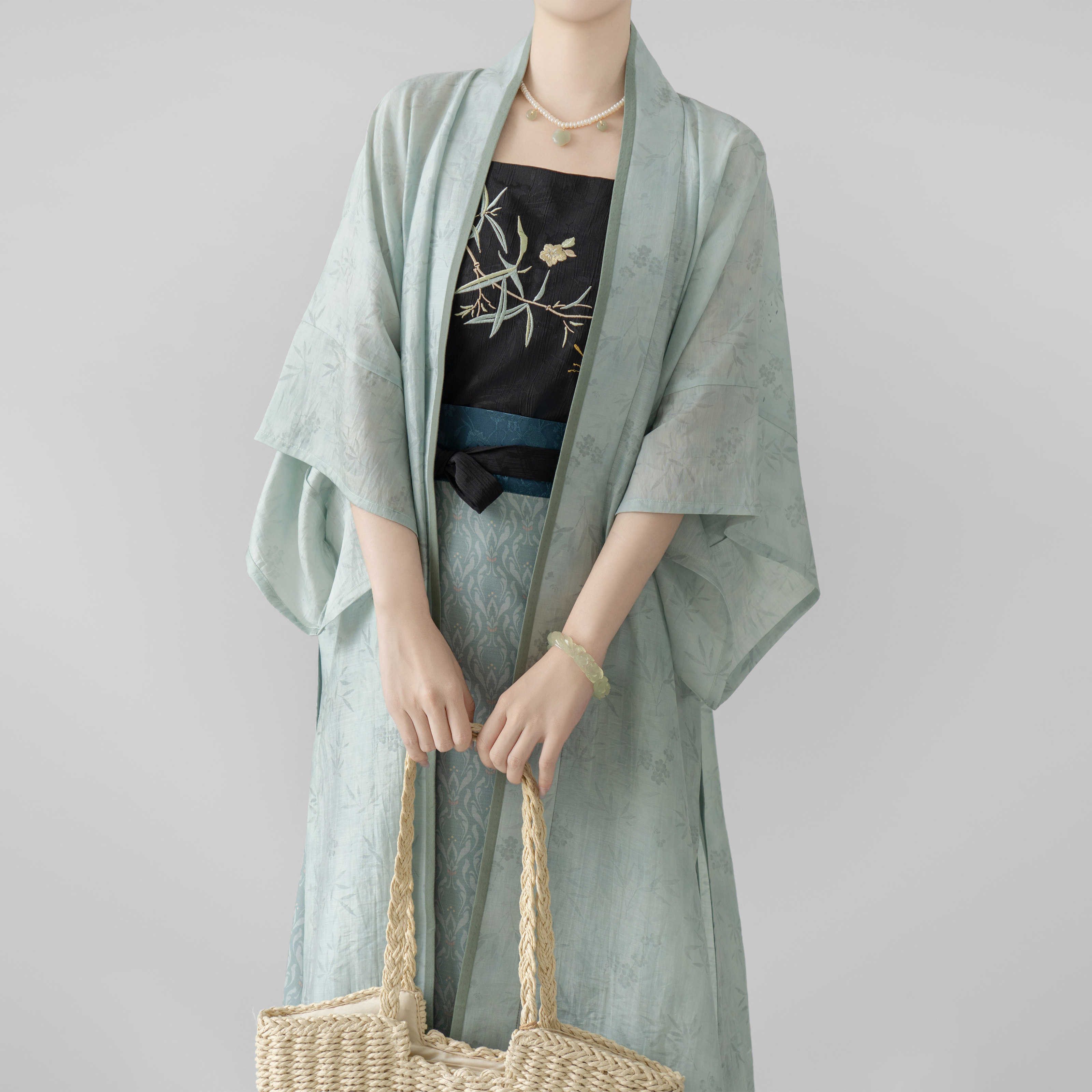 【观止织造|竹露】宋制汉服长干寺背心旋裙吊带人棉绣花提花日常