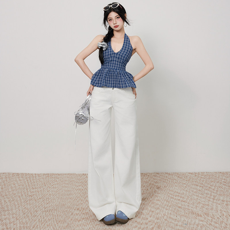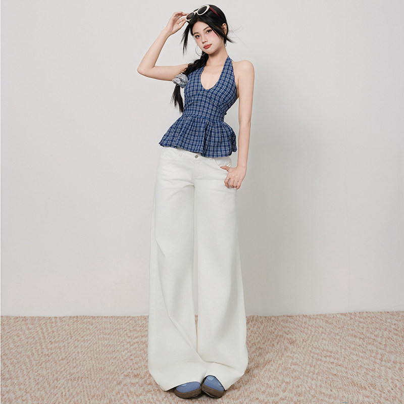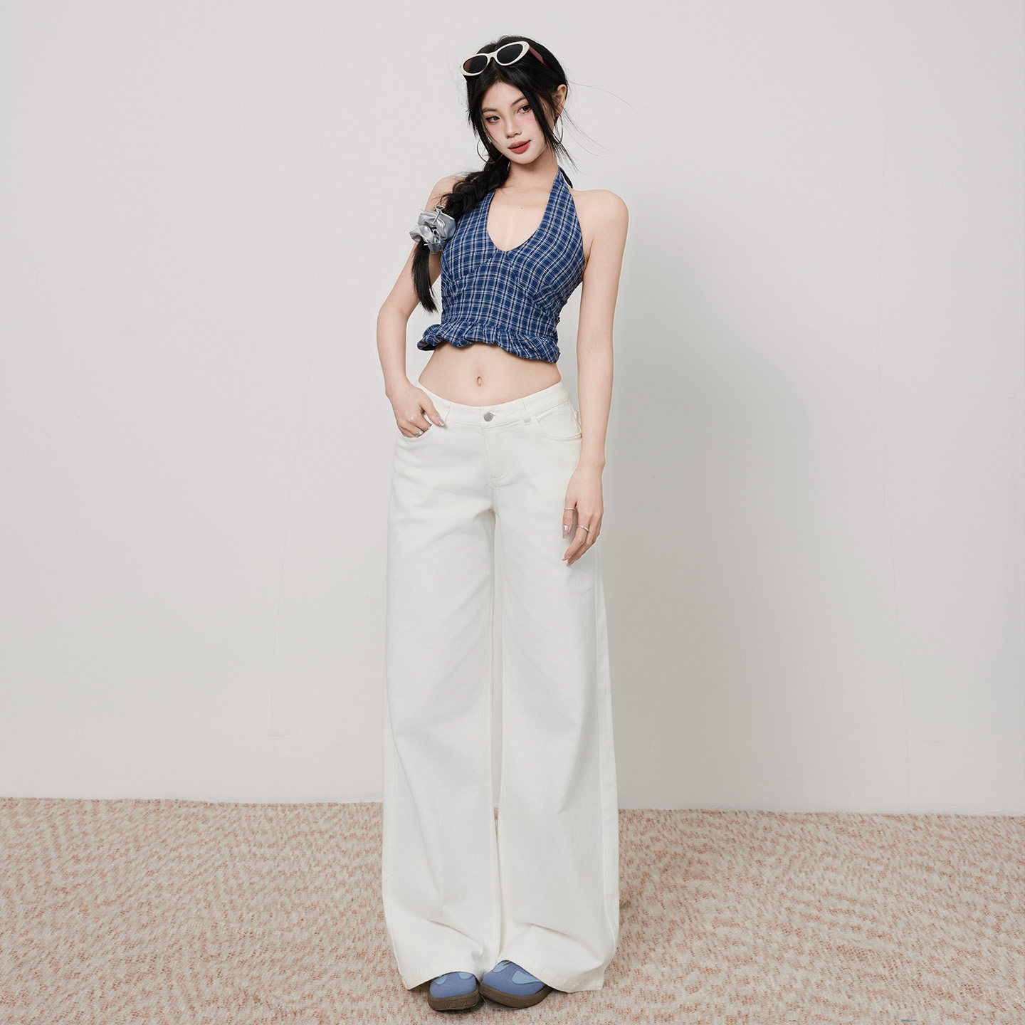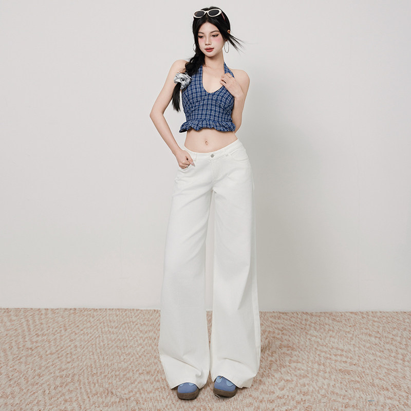 白色阔腿牛仔裤女2025秋季低腰宽松显瘦休闲直筒裤弹力垂感拖地裤