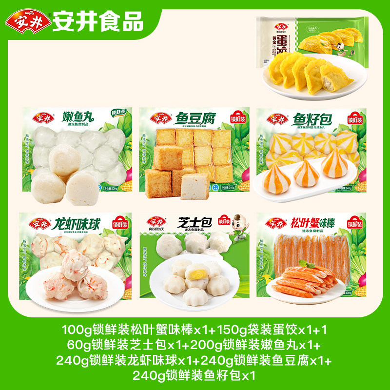 【7袋】安井火锅牛肉丸食材龙虾球鱼籽包鱼豆腐蟹棒鱼丸黄金蛋饺