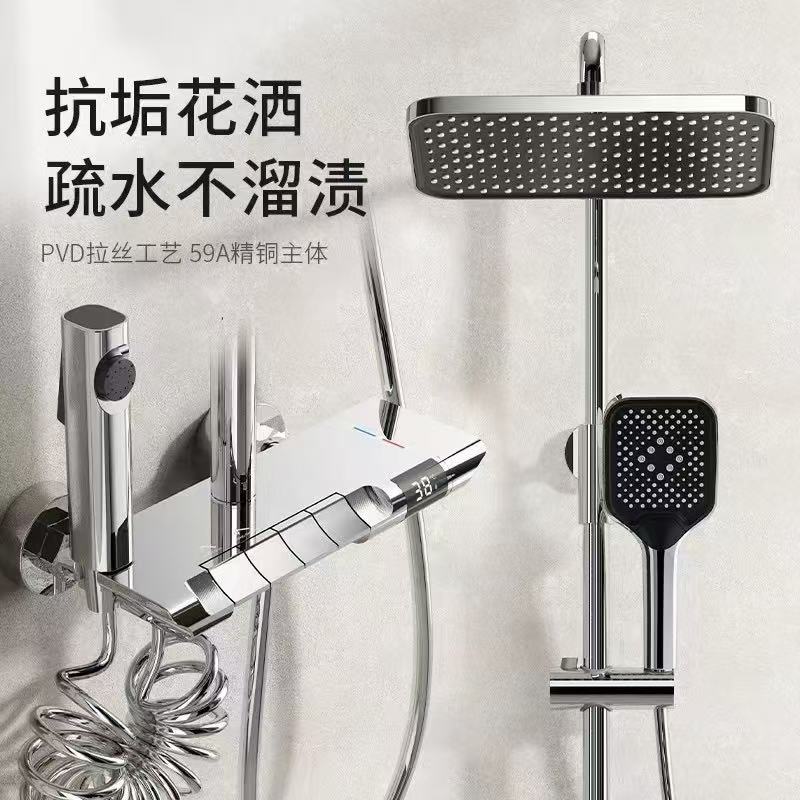 枪灰智能数显淋浴花洒套装家用卫生间增压淋浴套装喷头