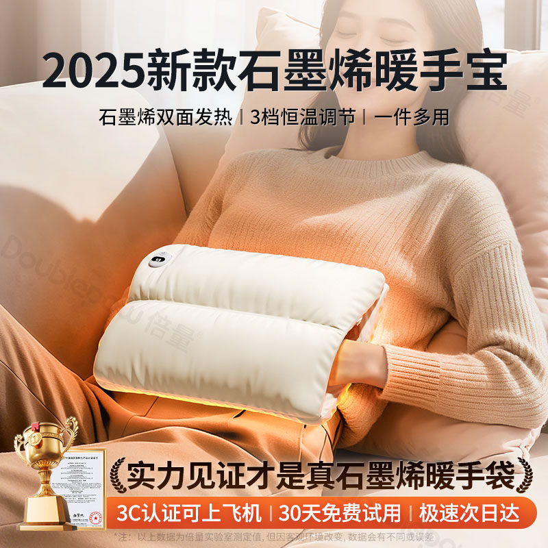 倍量石墨烯暖手袋充电款无水热水袋暖脚暖被窝专用暖手宝3C认证